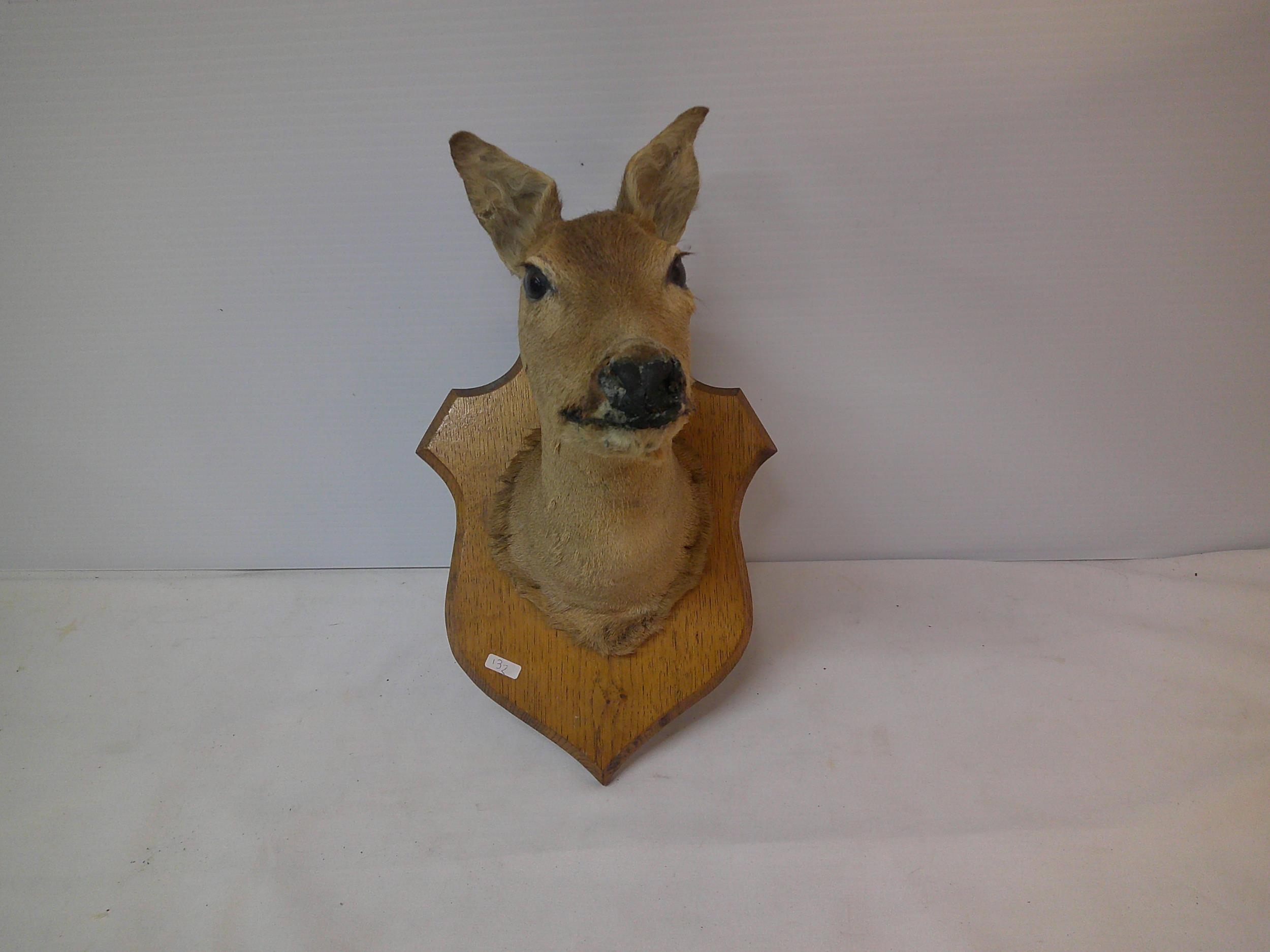 Taxidermy deer mounted on oak plinth