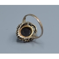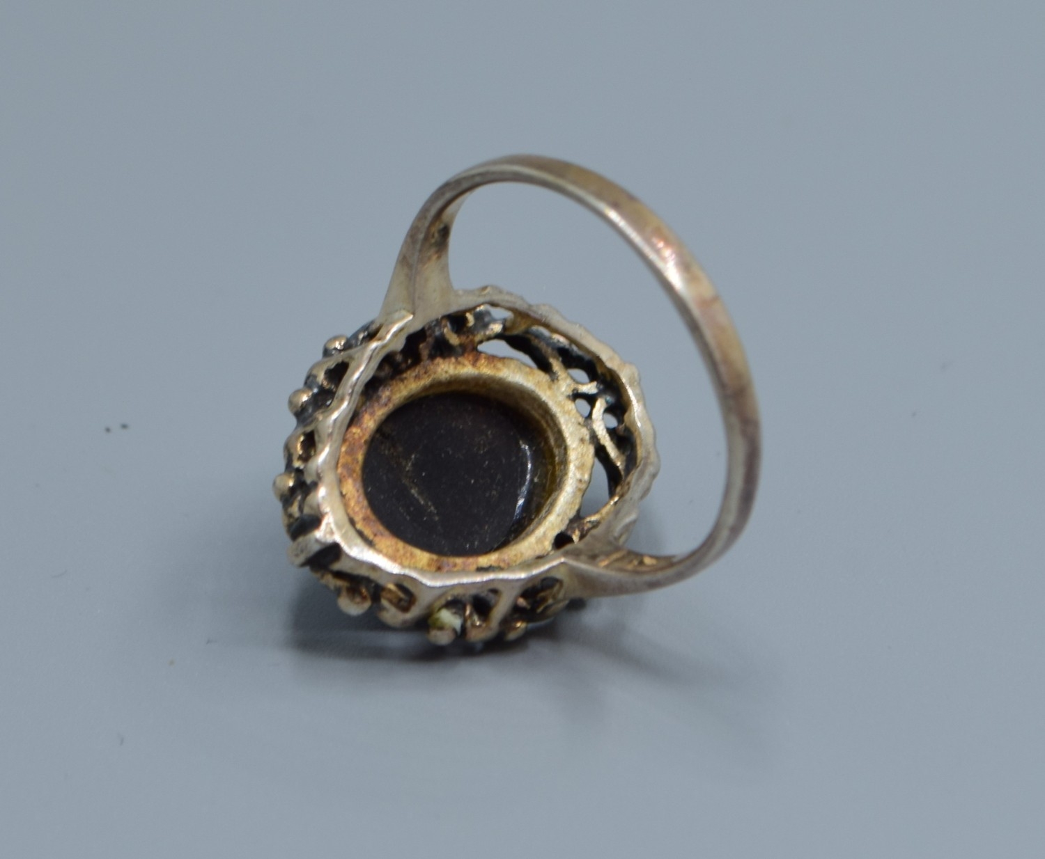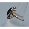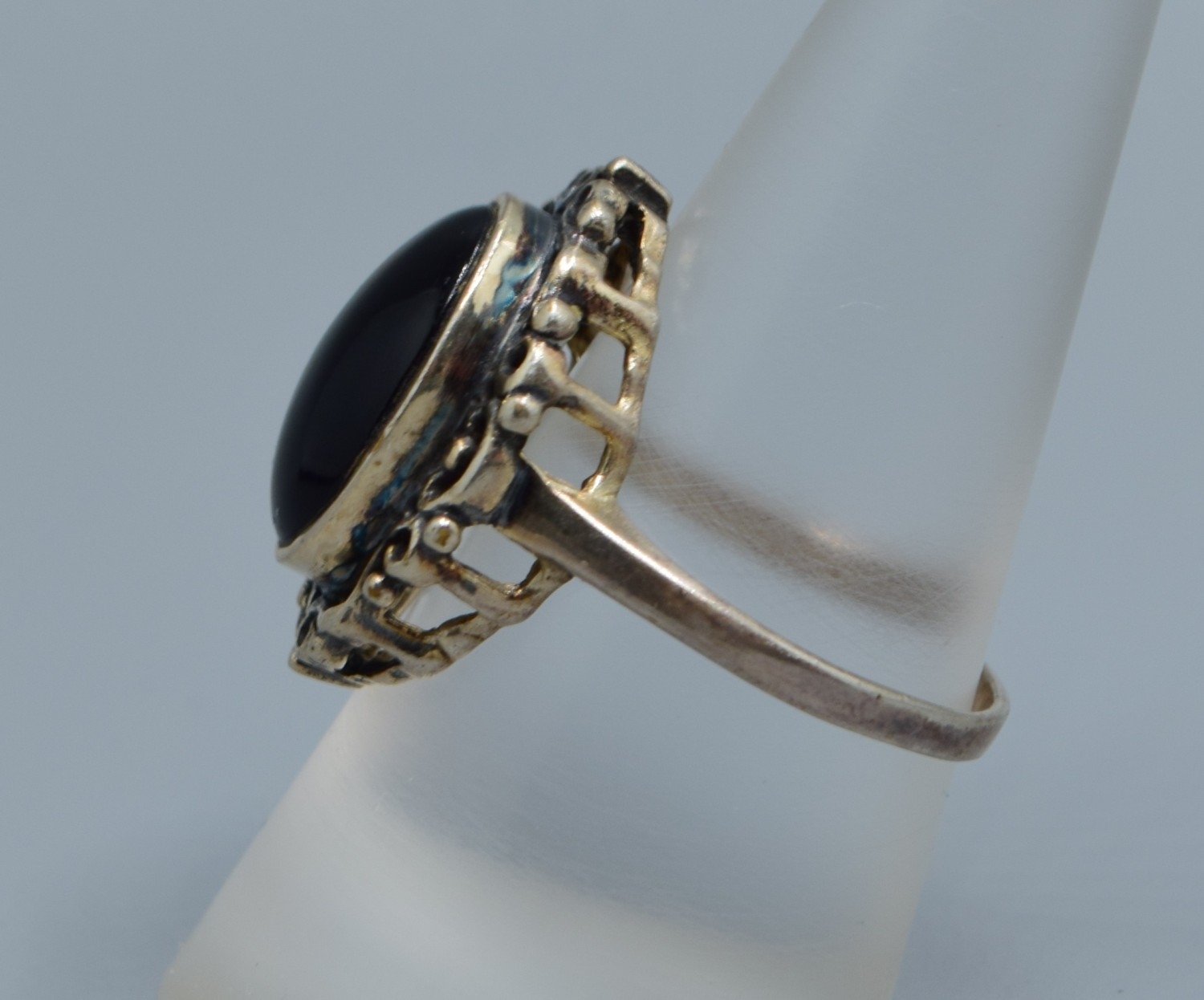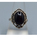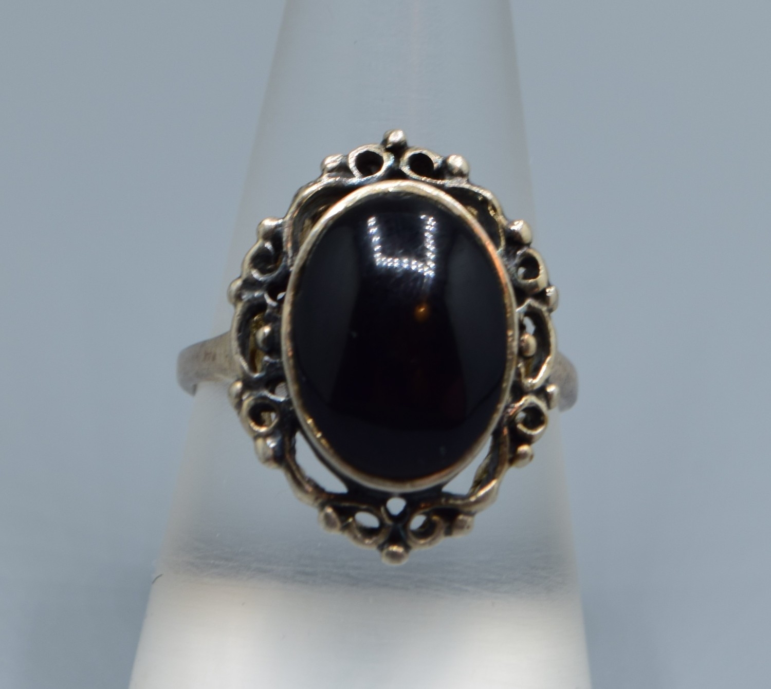 925 silver vintage Black Agate oval solitaire ring with embossed surround size R
