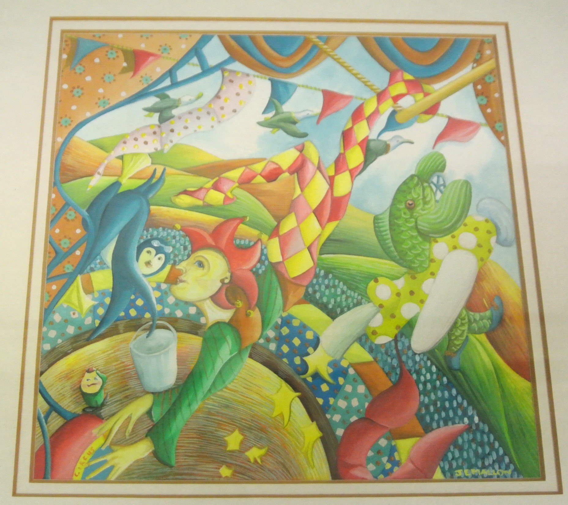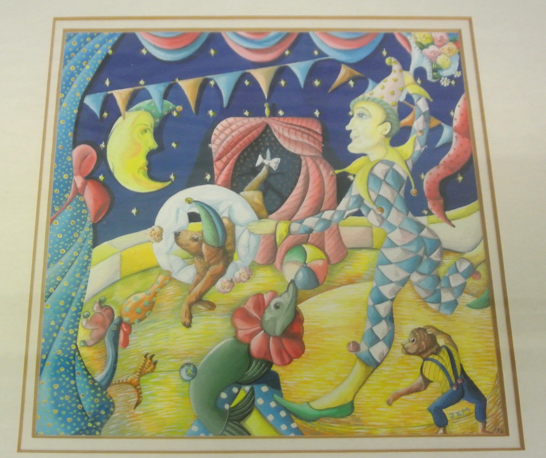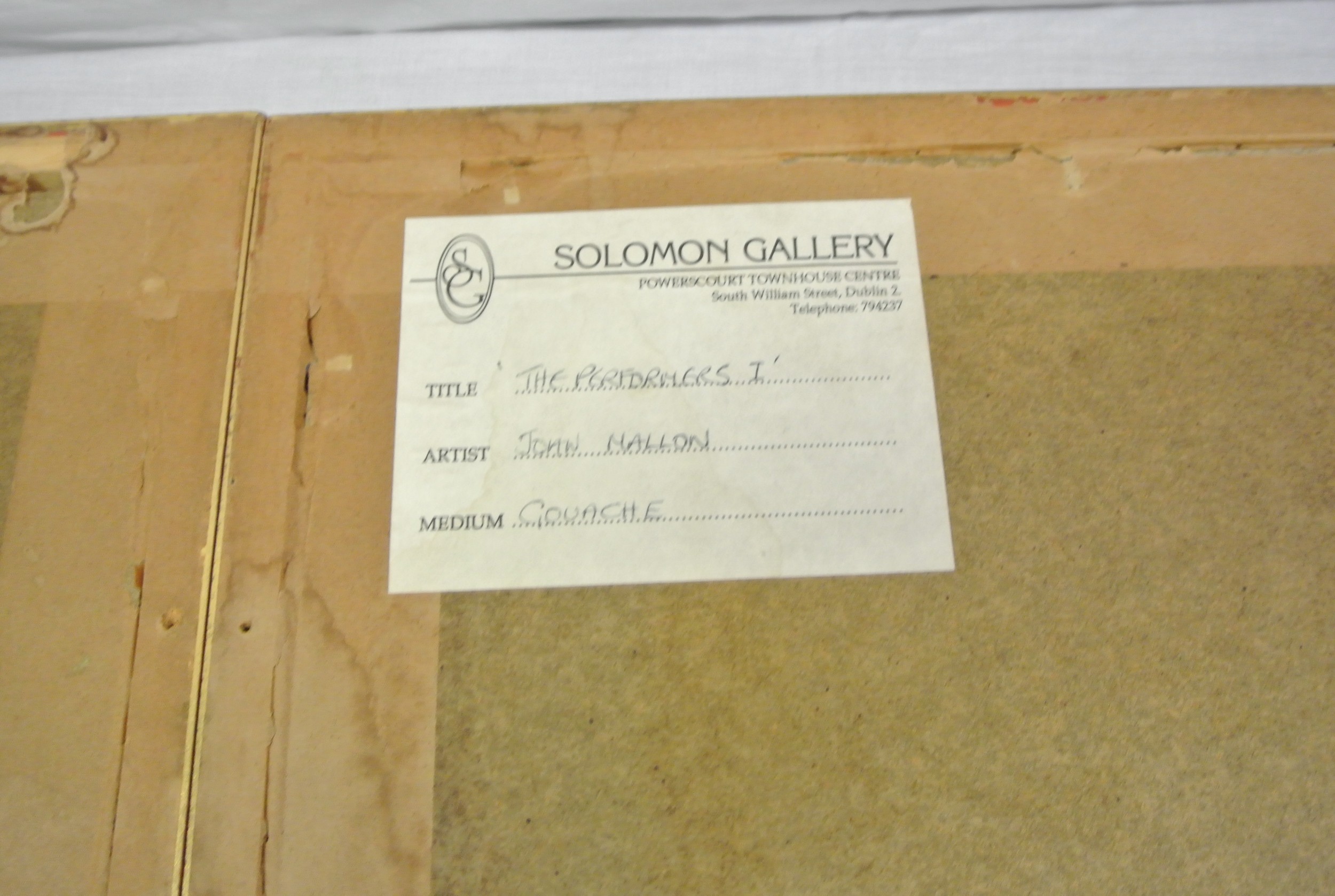 Joan Mallon 'The Performers I & II' a pair of watercolours, 18x18cm each, signed & initialled, Solomon Gallery labels verso