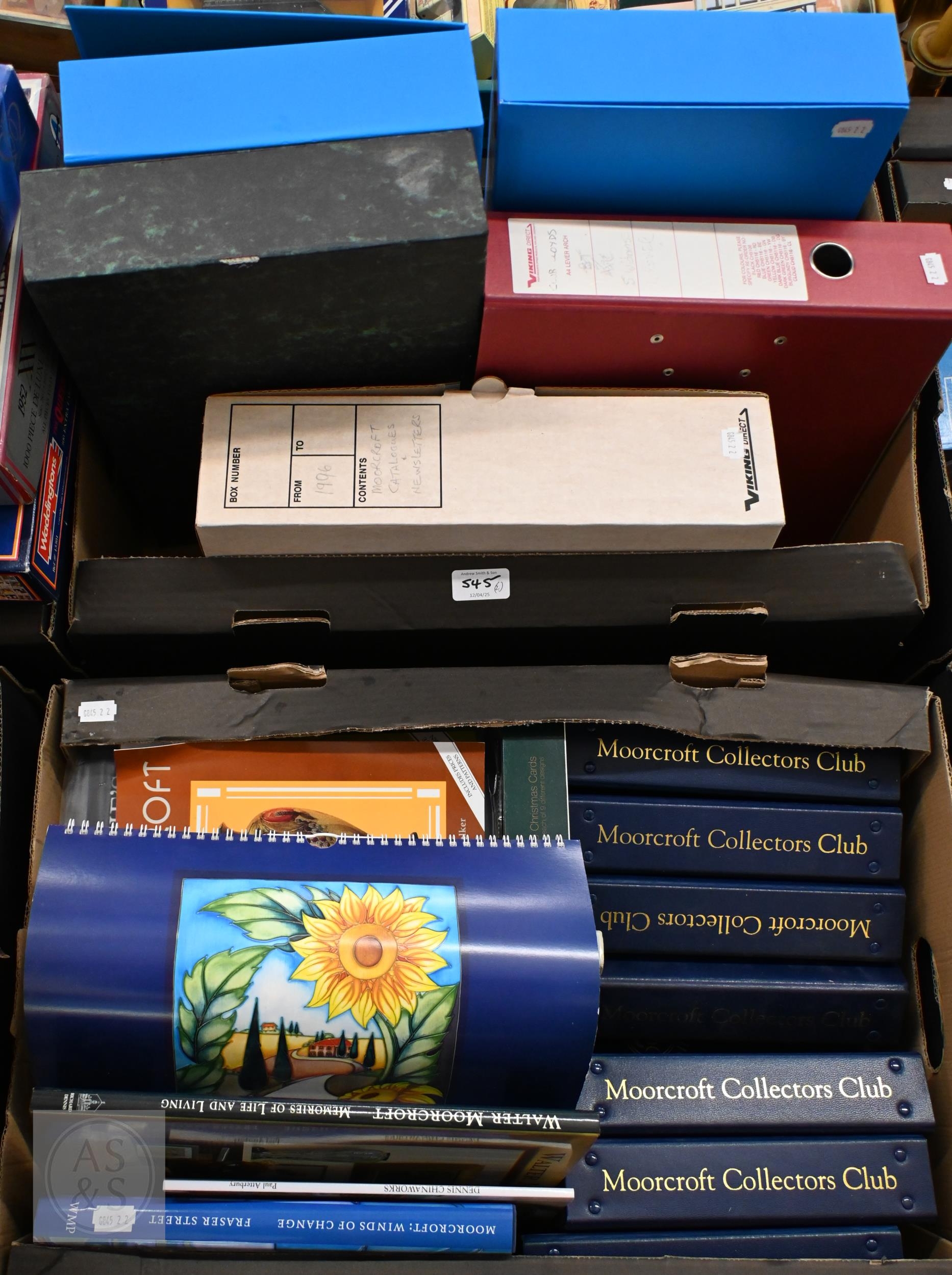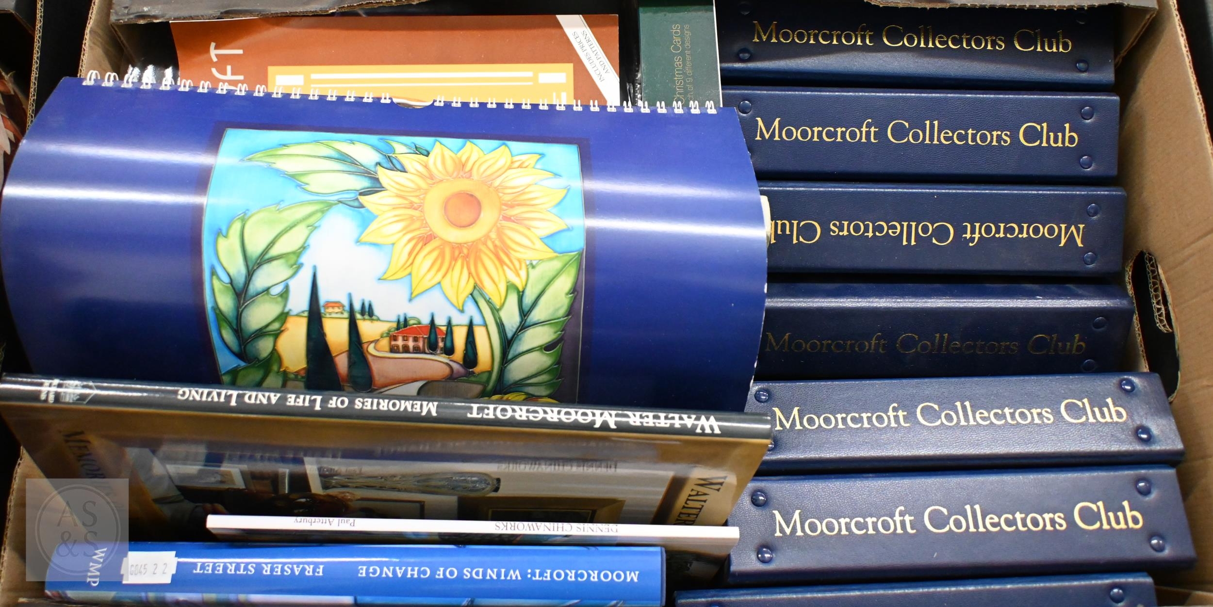 A quantity of volumes and periodicals on the subject of collecting Moorcroft pottery ( 2 boxes)