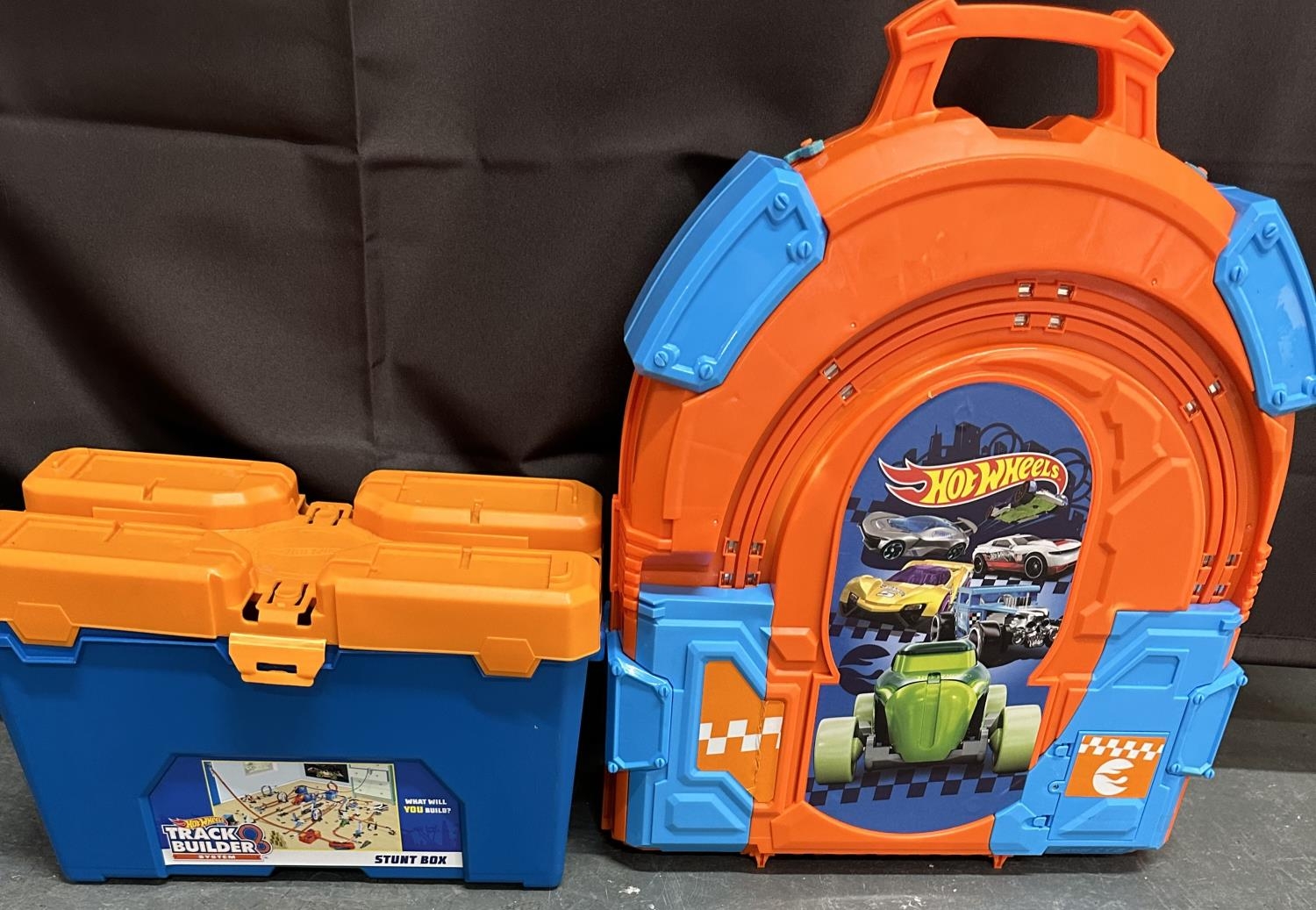 Hot wheels track and a box of stunt track