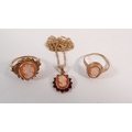 Two 9ct gold cameo rings size M and O, plus a 9ct gold cameo necklace, toal weight 8.5g