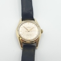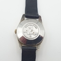 OMEGA. An Omega 'Ladymatic' Seamaster Wristwatch the silvered dial with hourly baton markers in gold-plated and stainless steel case, case width approx 25mm, on black leather strap