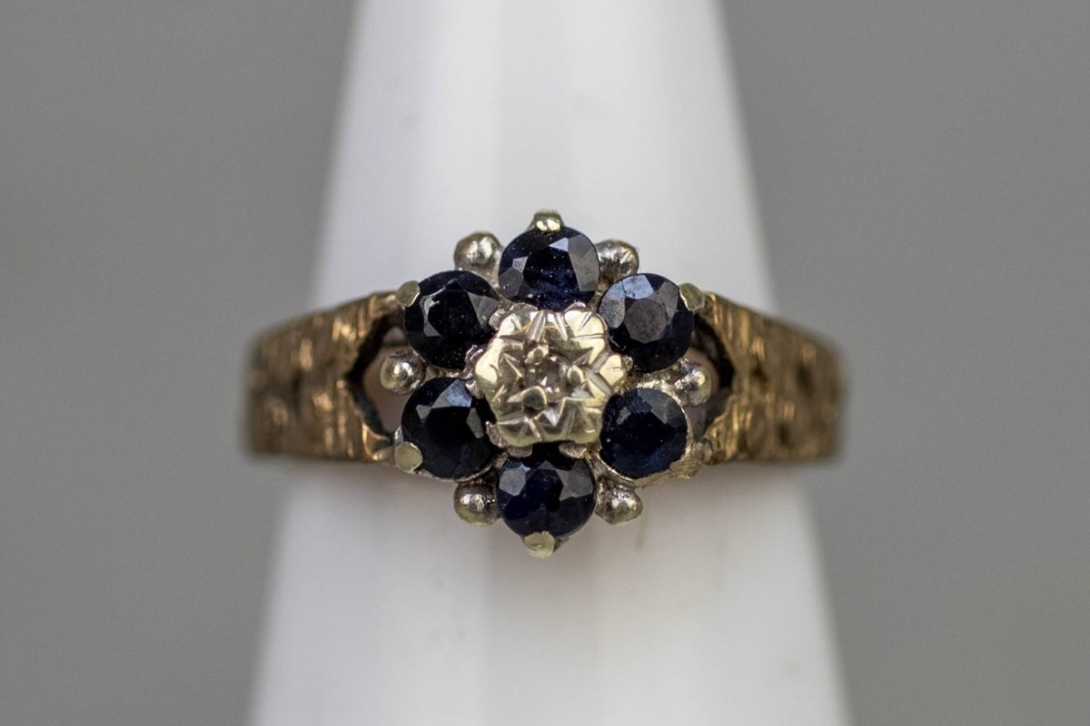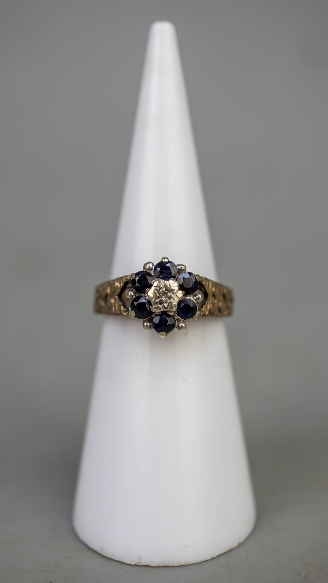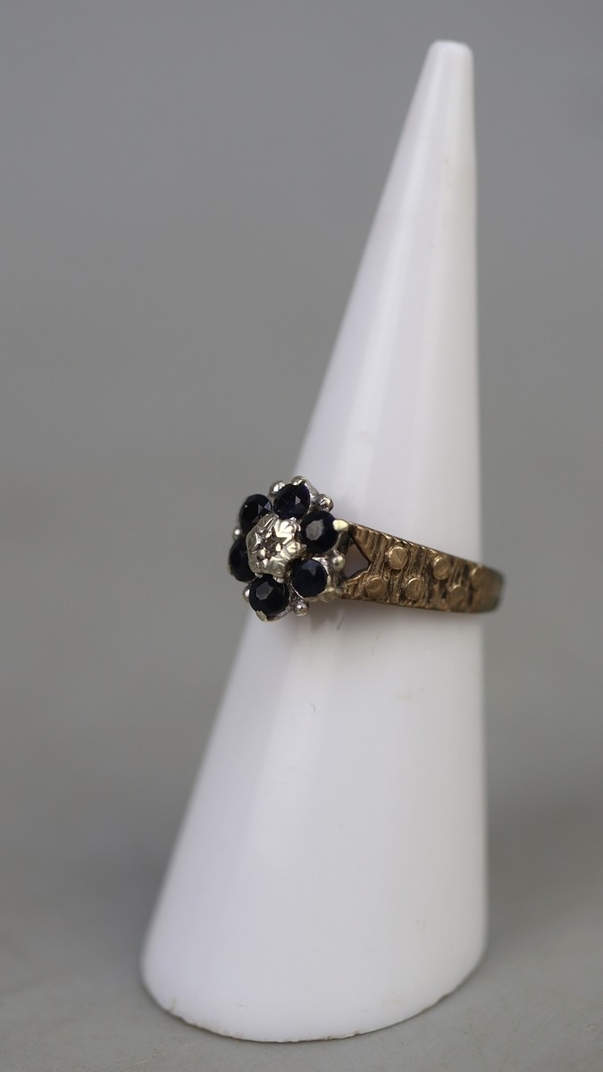 9ct gold sapphire & diamond set ring - Approx 3g - Size I
