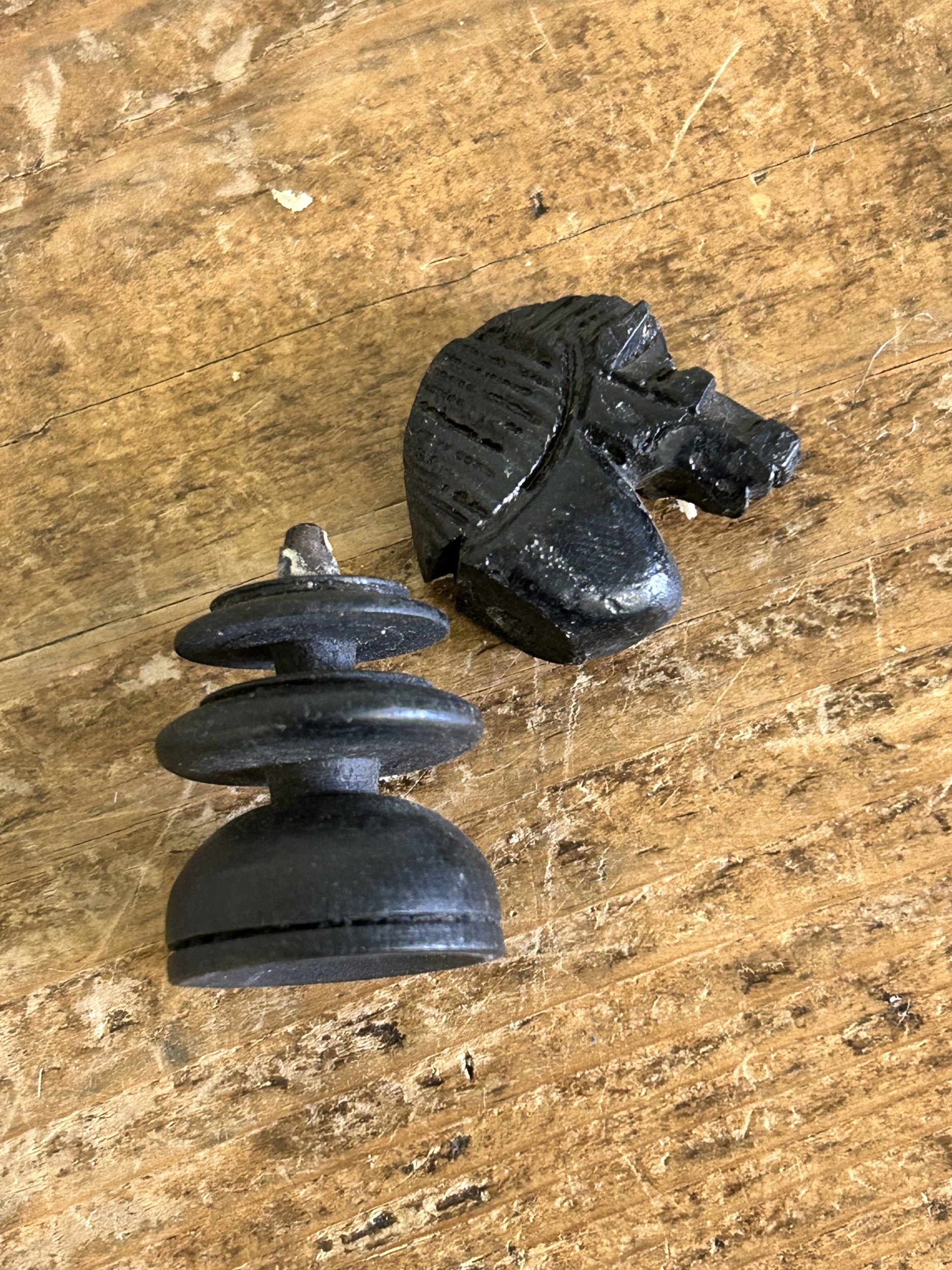 Two vintage wood sets of chess pieces (one set has a pawn mi...