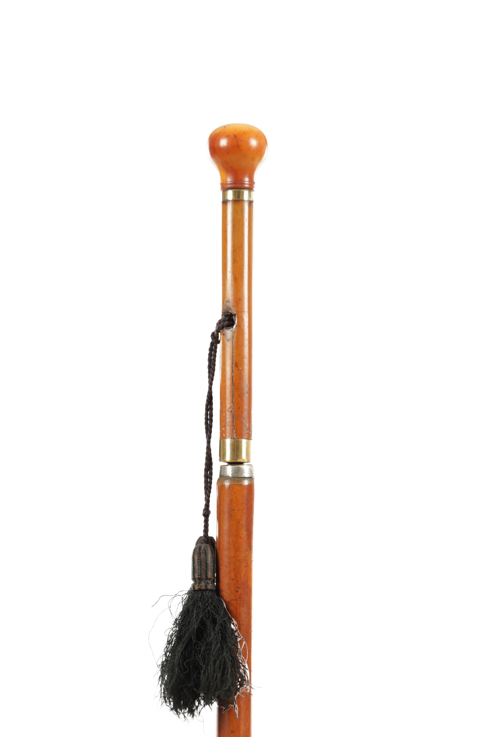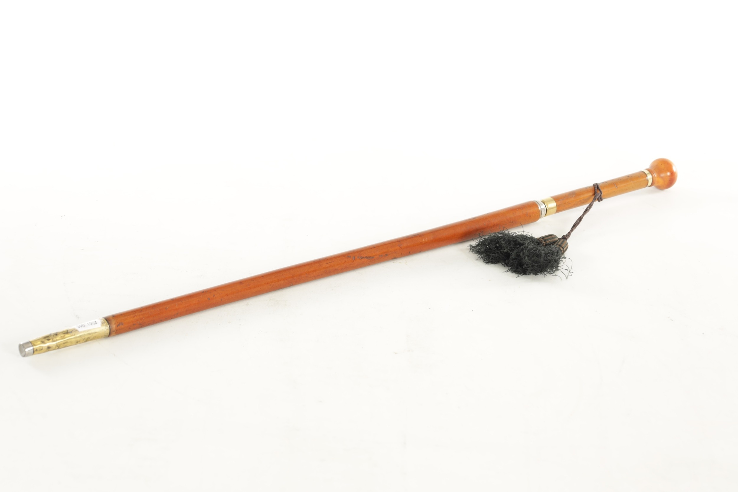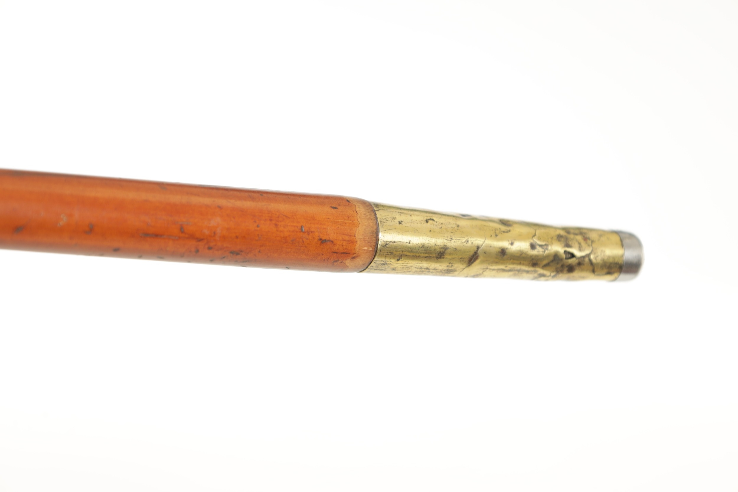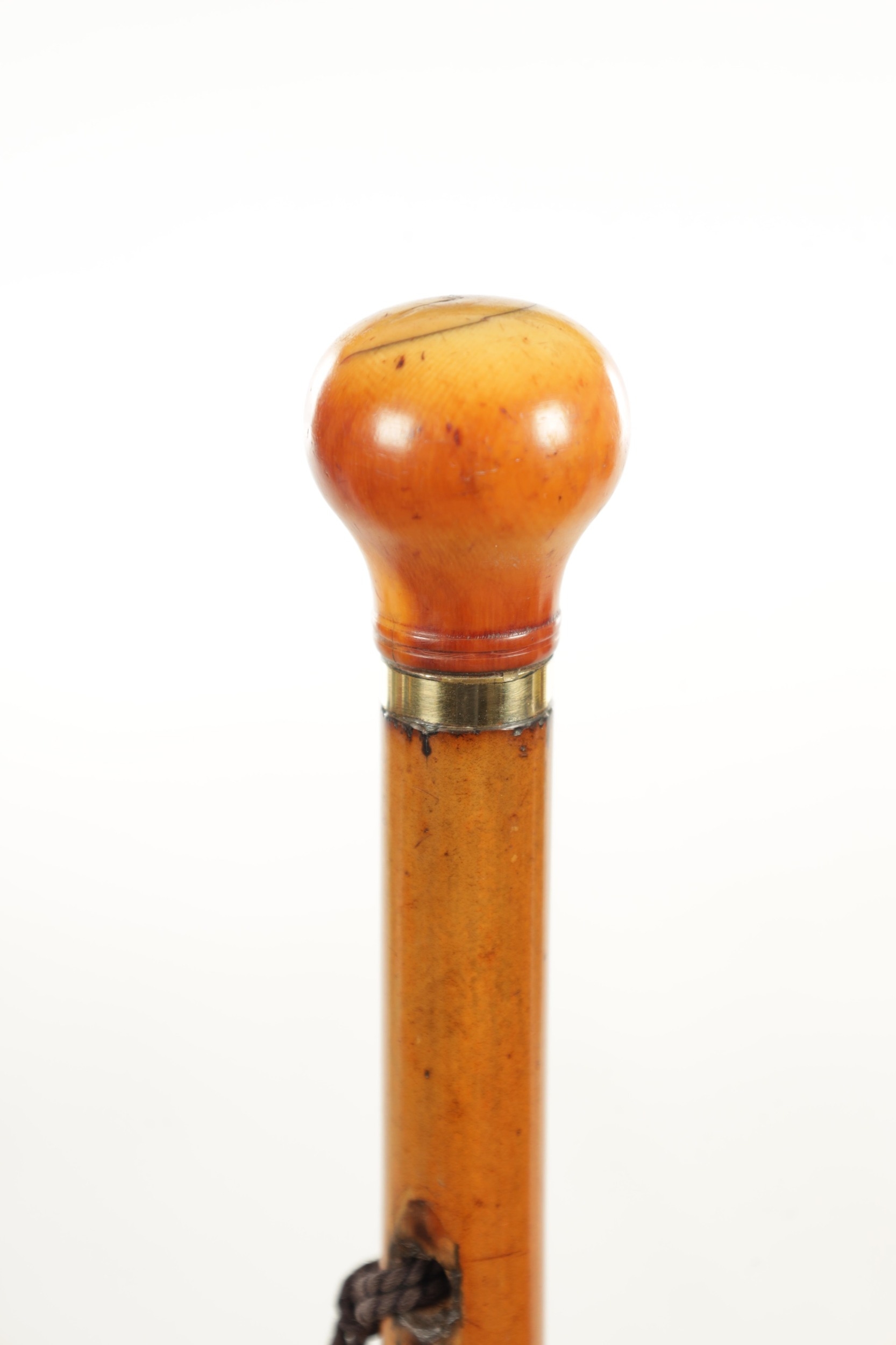 A 19TH CENTURY IVORY HANDLED SWORD CANE, the spherical ivory pommel with malacca grip handle on a triangular profiled blade with sharpened tip below a cord hole and metal collars fitted with a malacca cane shaft with long steel-tipped brass ferrule. Ivory Act 2018 Exemption Submission Reference - 1ZZTUDKT (Length 82cm, Blade 19.7cm long)