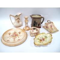 Academy days figurine with glue repair arm, both figures of women holding flowers with chips to petals, Ingenue with missing arm.