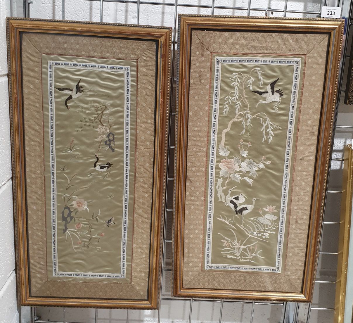 A pair of silk needle works, 23.5"x11". No shipping. Arrange collection or your own packer and shipper please.