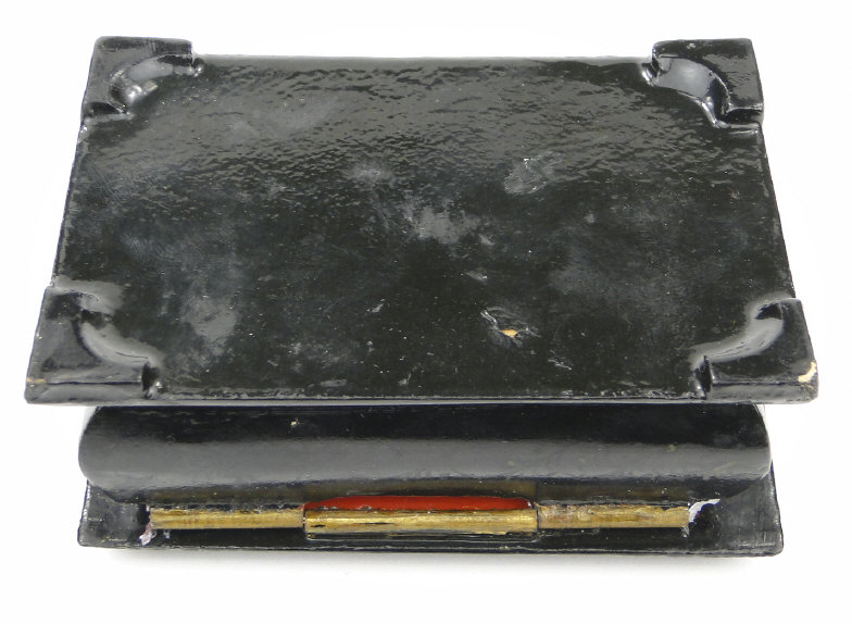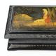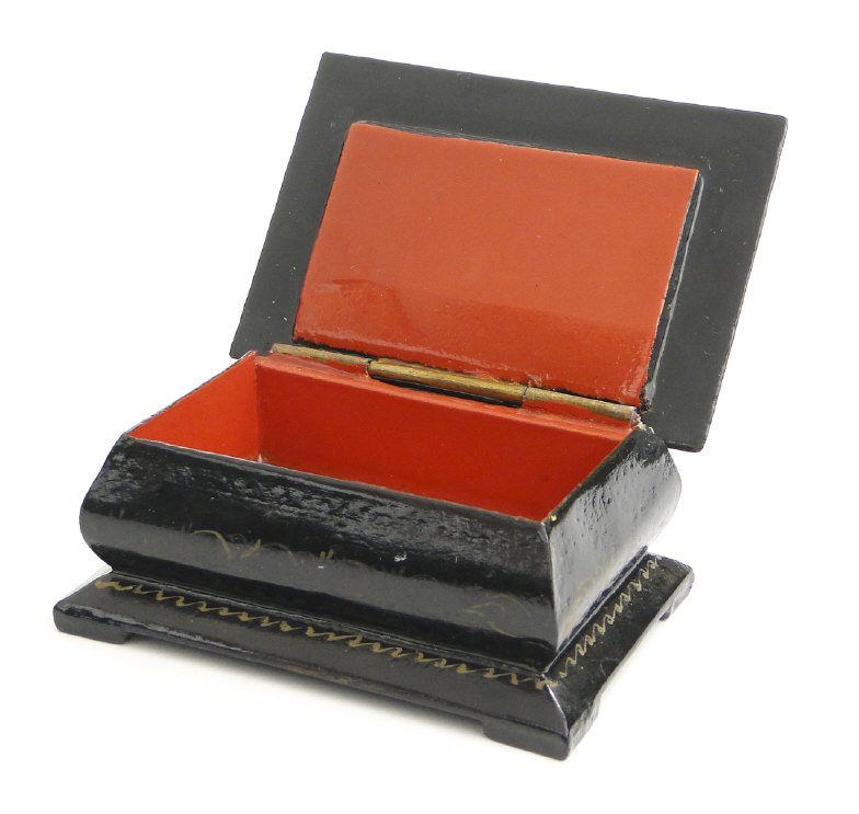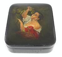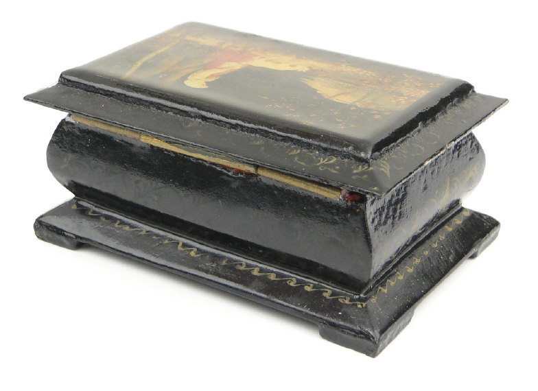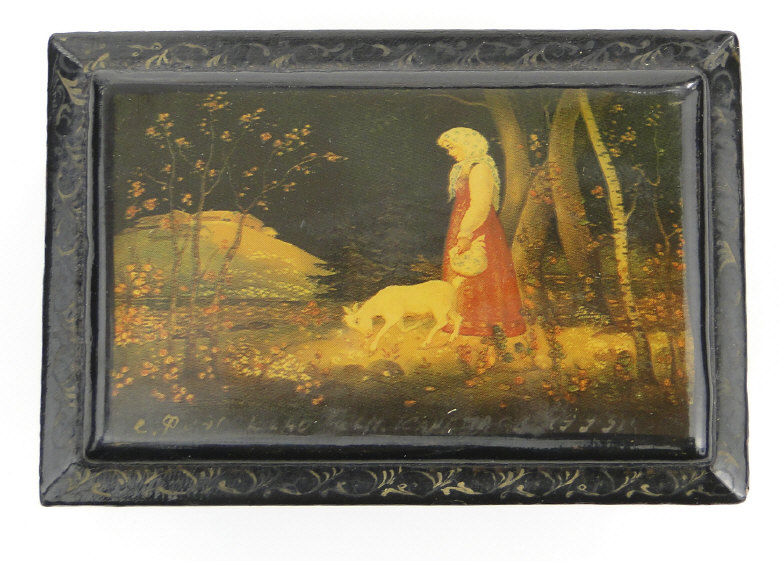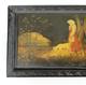 Russian black lacquered rectangular box, decorated with woodland scenes, signed to the lid, 9cm in length