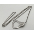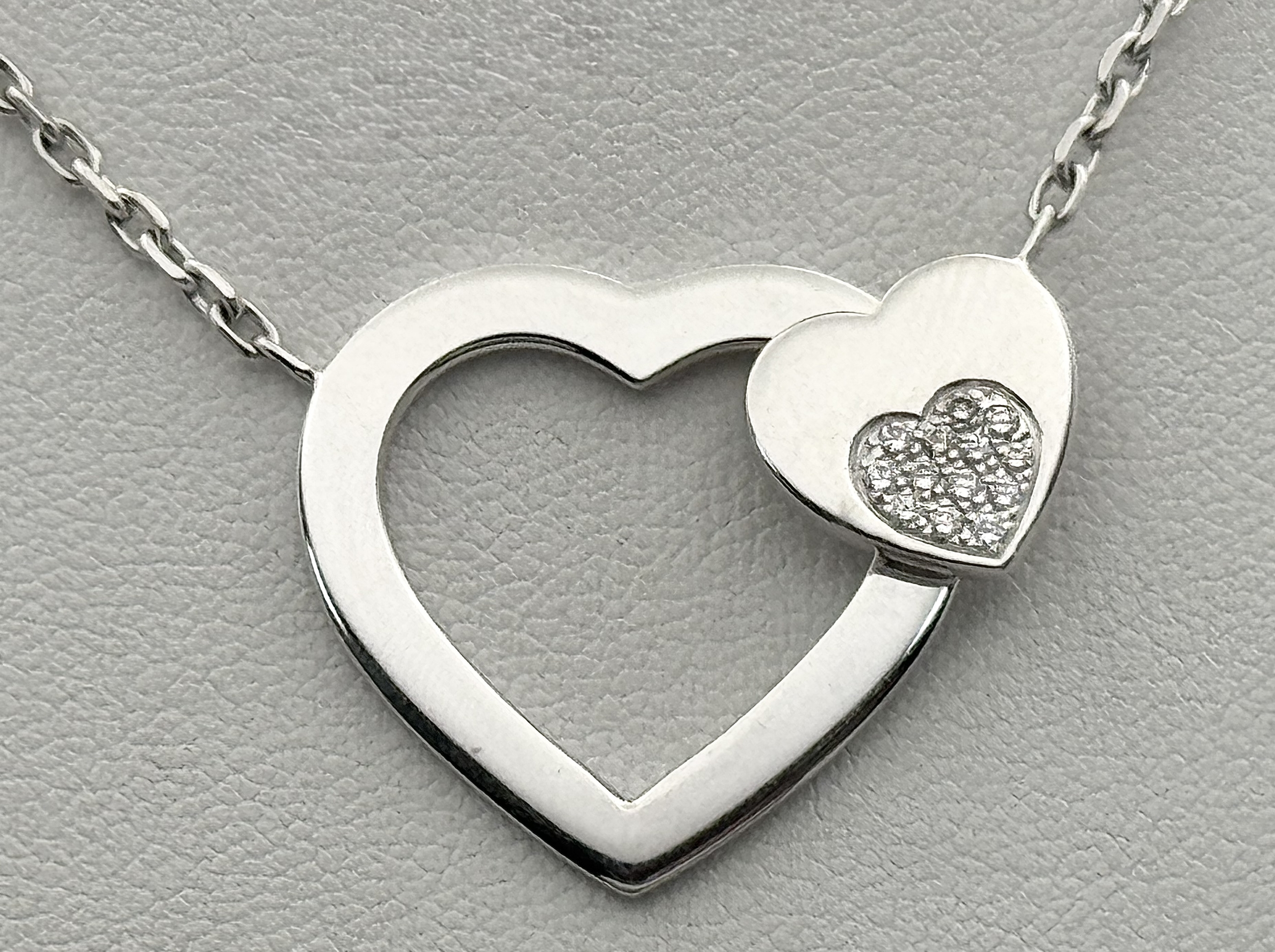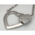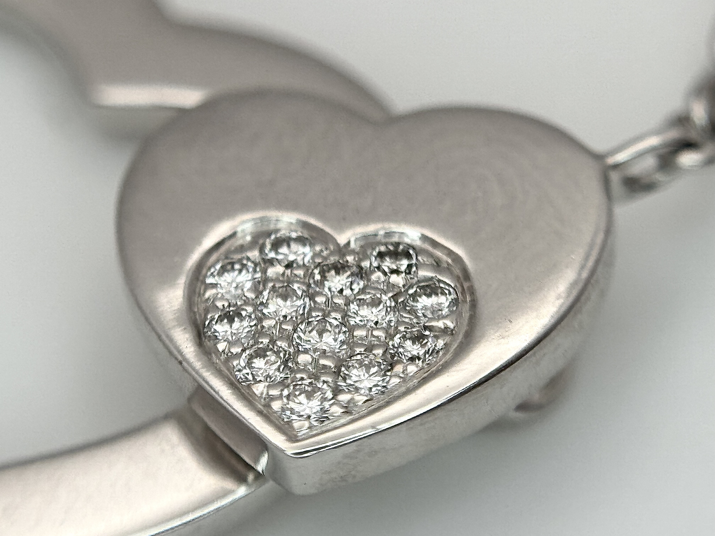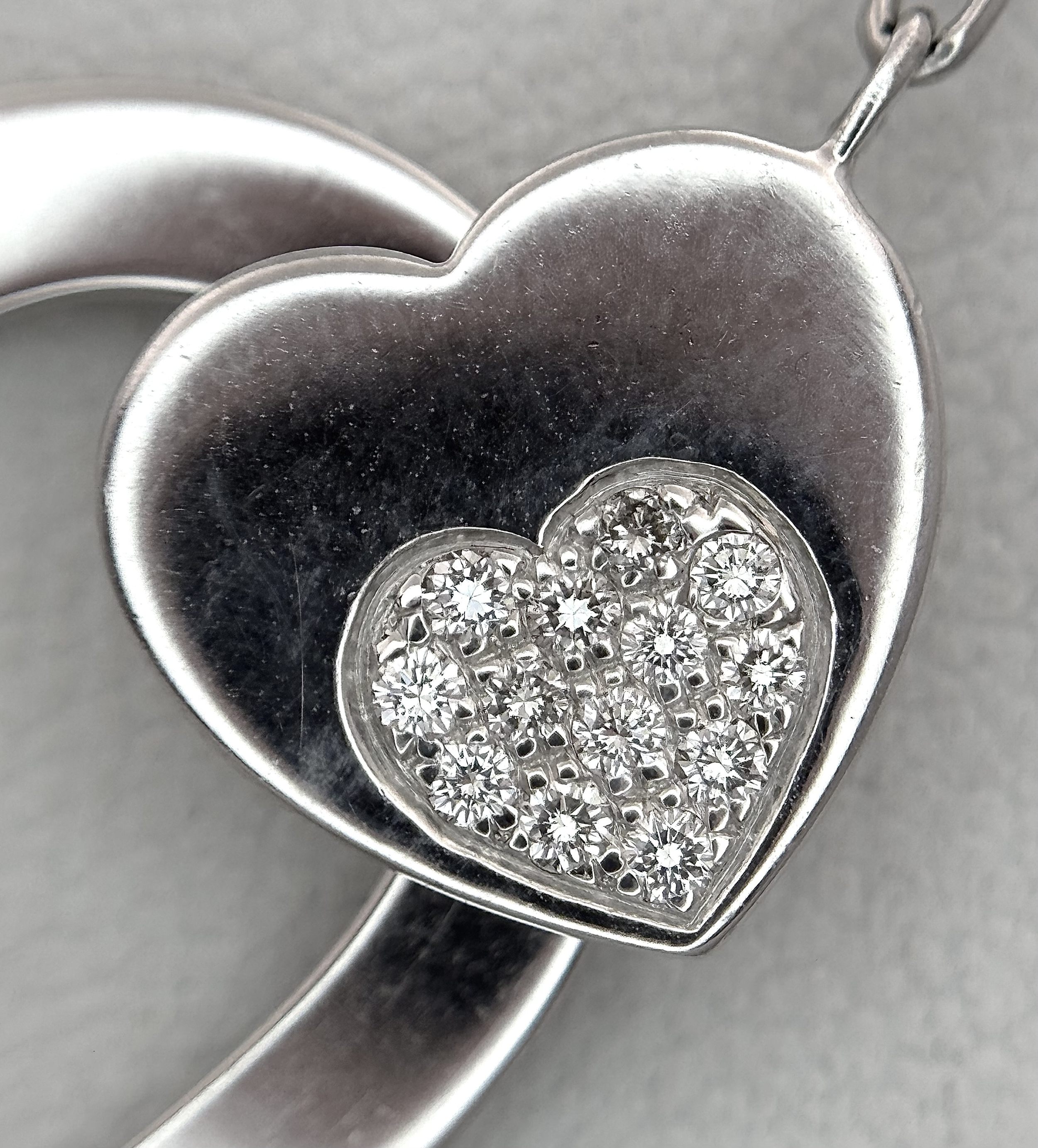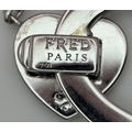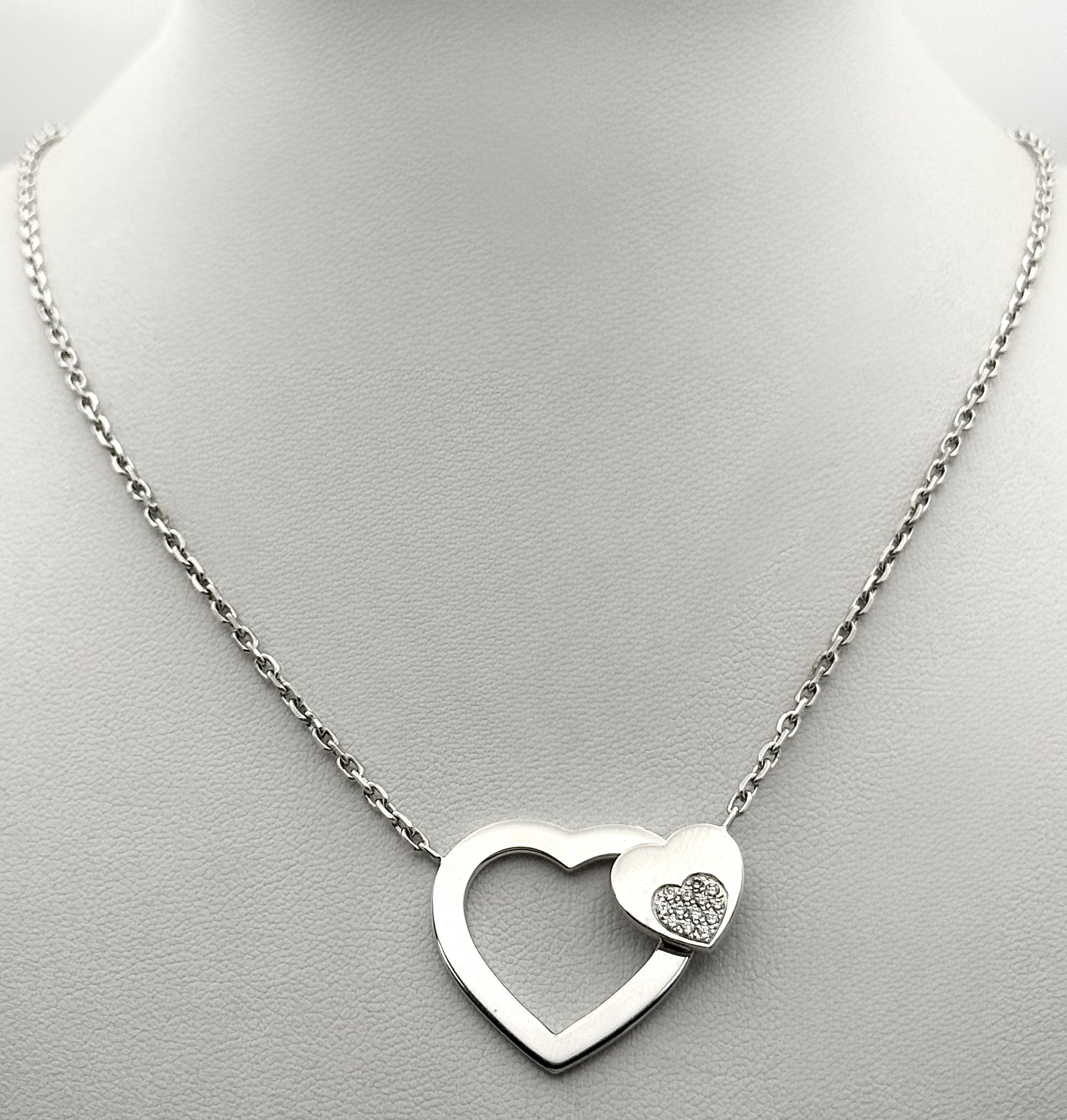 An 18K White Gold and Diamond "Fred of Paris" Designer Necklace with Double Heart Pendant. 3 x 2cm pendant. 40cm necklace. 12.9g. MT78.