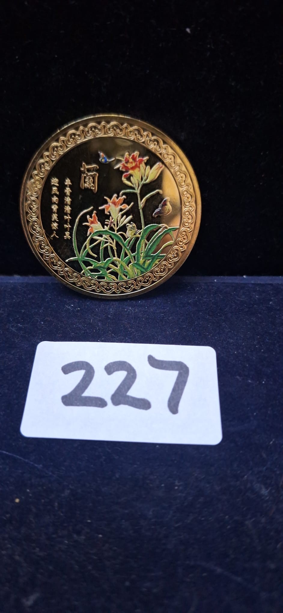 Collectible Chinese Coin Depicting Plants and Flowers