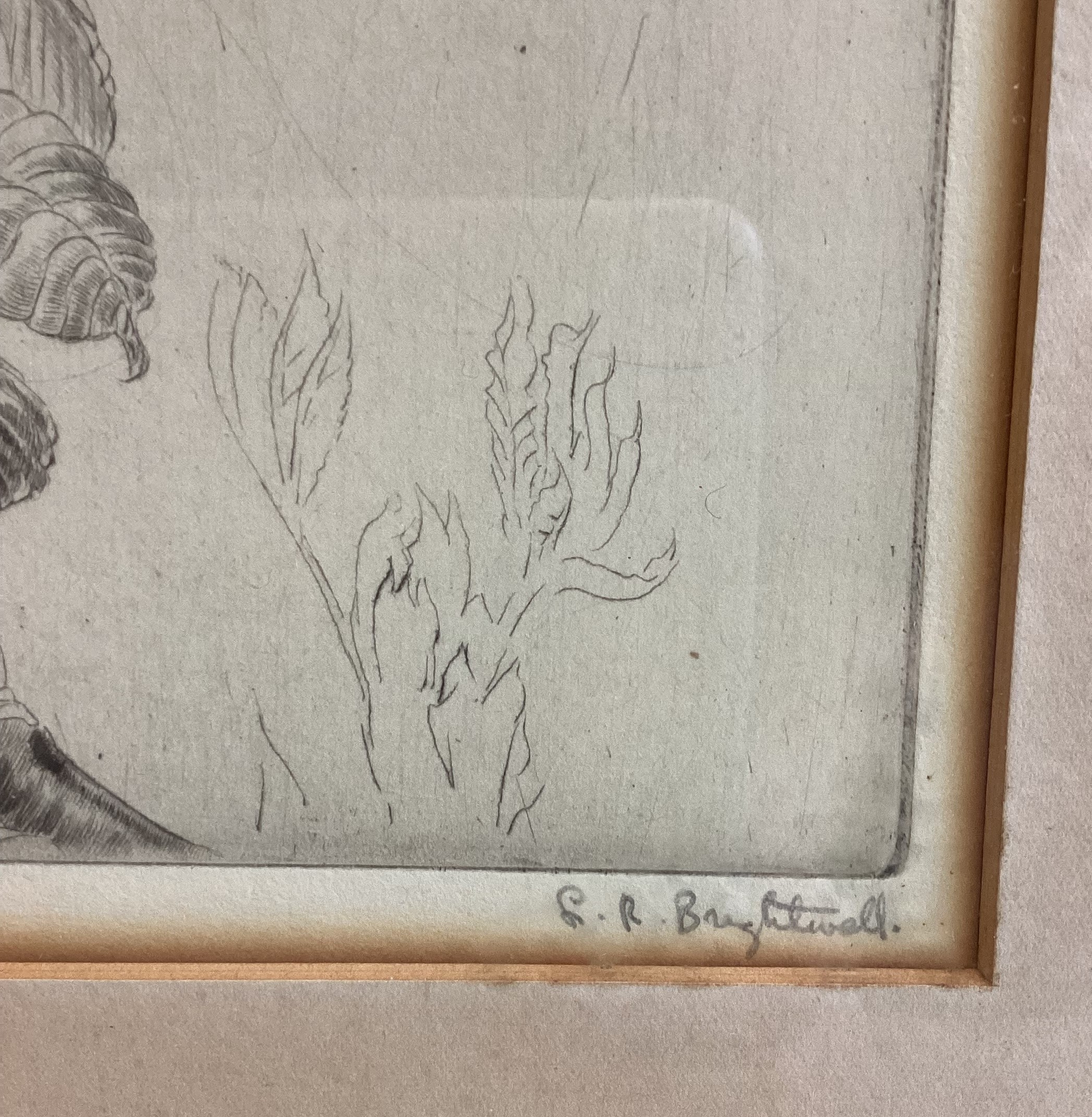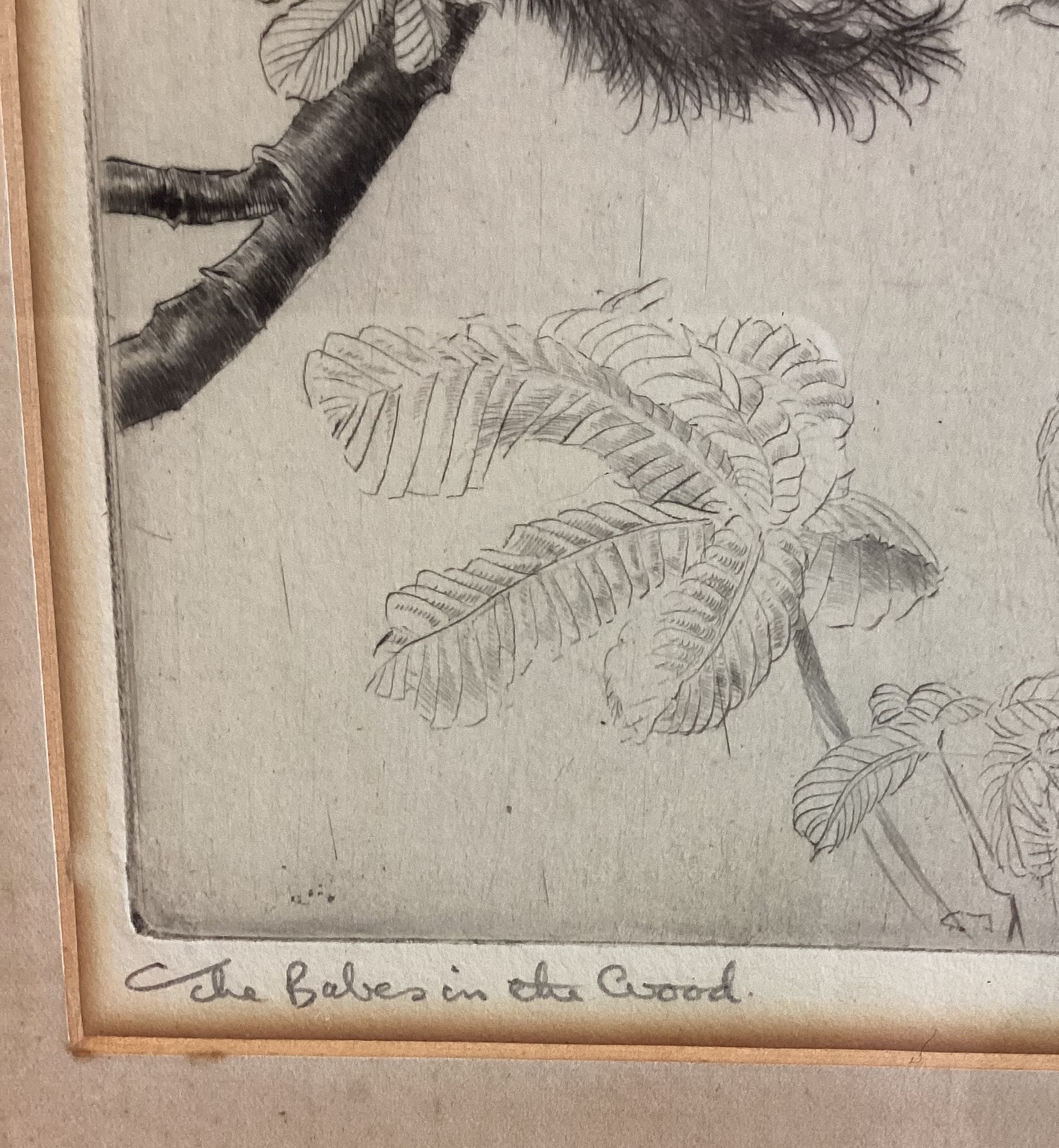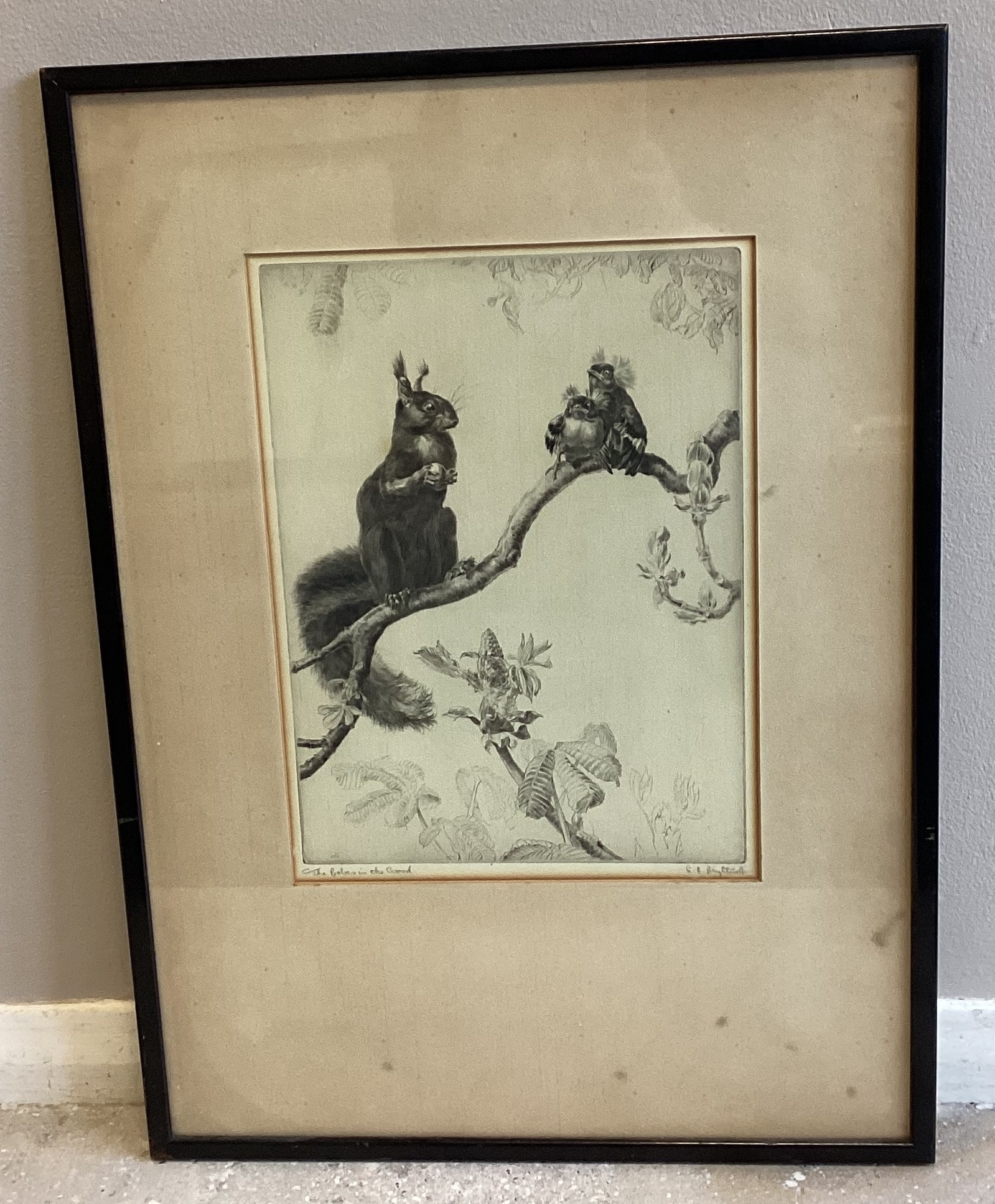 LEONARD RUSSELL BRIGHTWELL: (British, 1889 - 1962): A framed and glazed etching entitled 'Babes in the Wood' depicting a squirrel with nut and birds. Pencil signed to bottom right. Approx. 29 cm x 22 cm (ss). Est. £100 - £150.