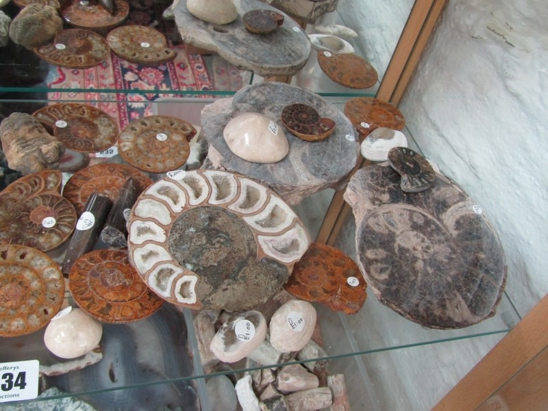 FOSSILS, variety of stone set fossils, ammonite and others, various sizes and colours