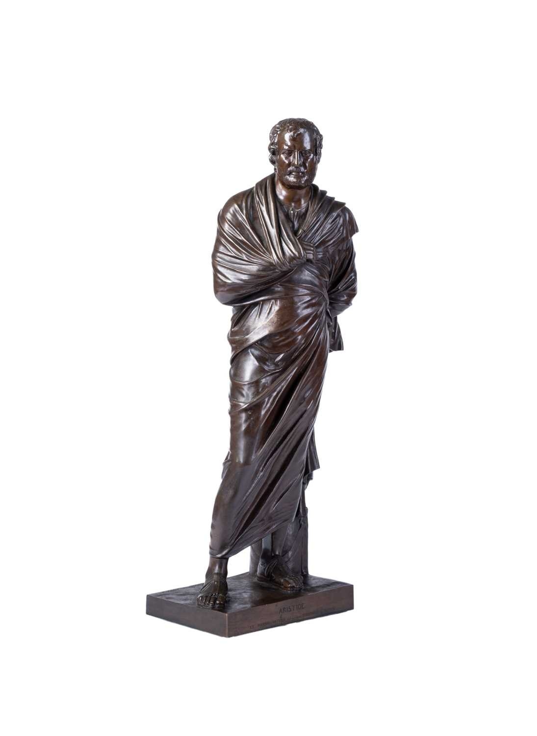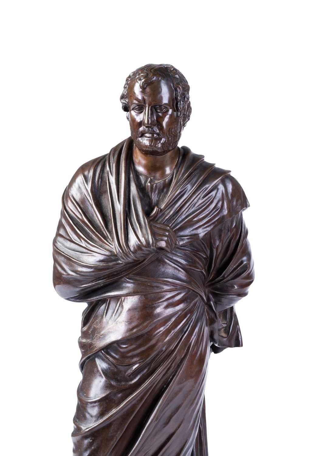 A large 19th-century French Grand Tour patinated bronze figure of Sophocles, 'F. Barbedienne, Fondeur' inscribed to the base, 63 cm high.