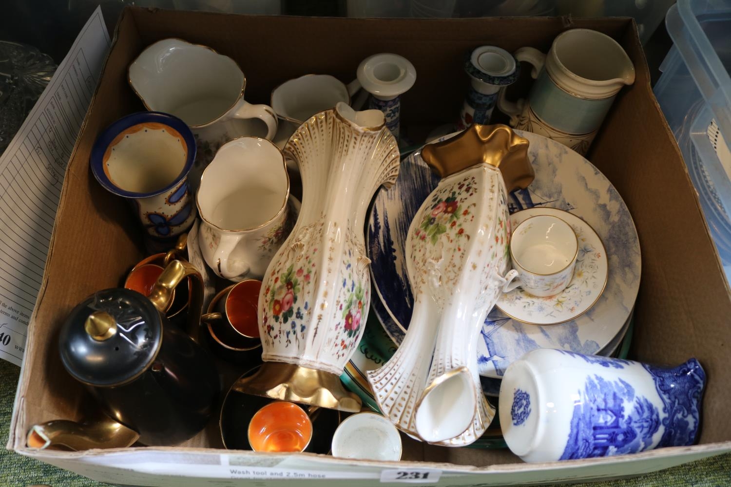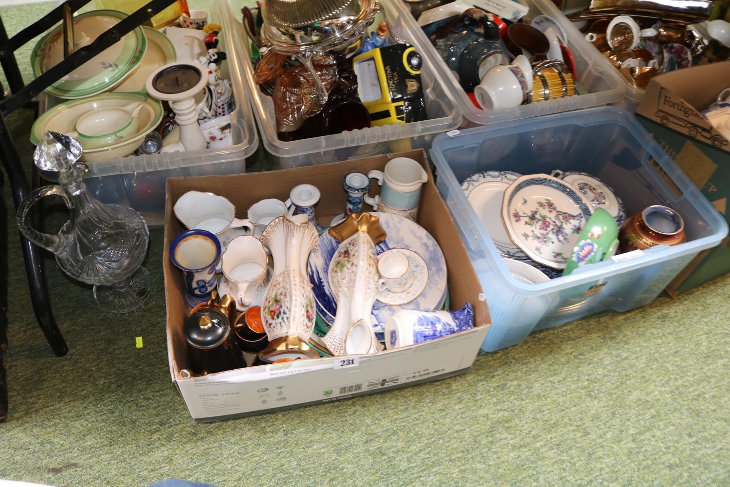 4 Boxes of assorted Ceramics to include Carlton ware Floral vase, Veritable Crystal Claret Jug, Losolware etc