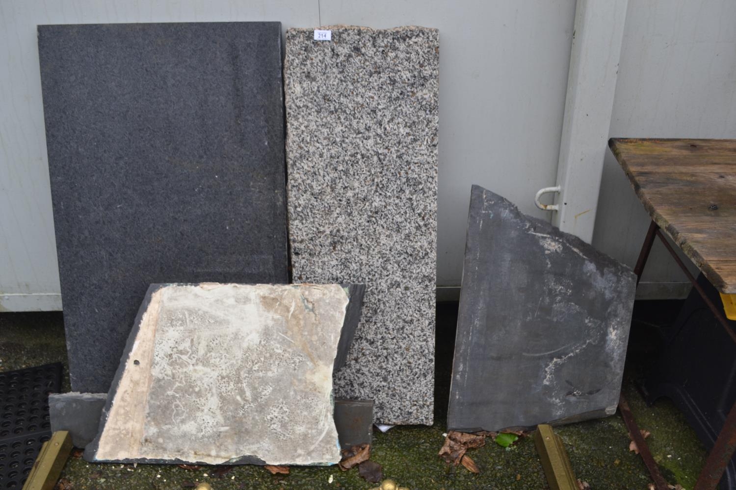 Various offcuts, slate, granite etc. Granite piece perfect for Singer treadle base Largest H105cm