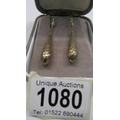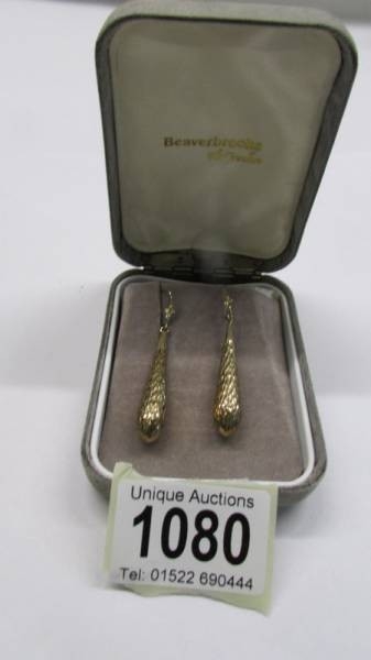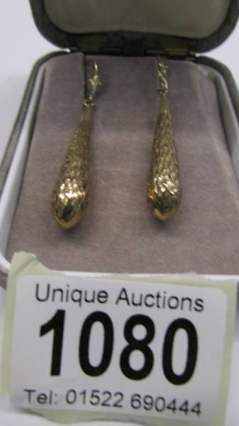 A pair of textured 9ct gold pendant earrings.