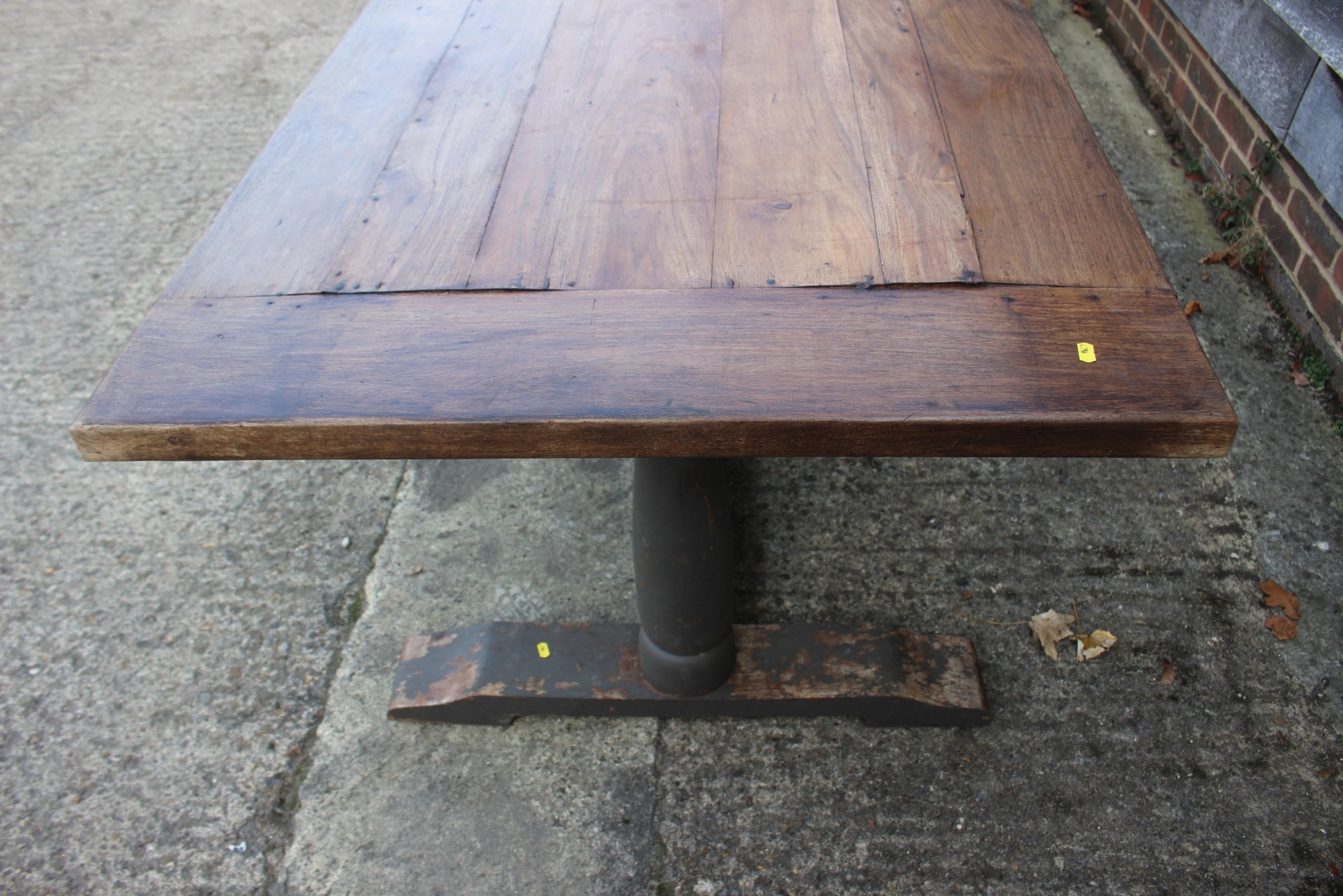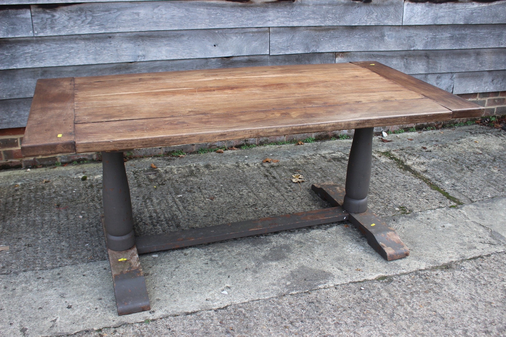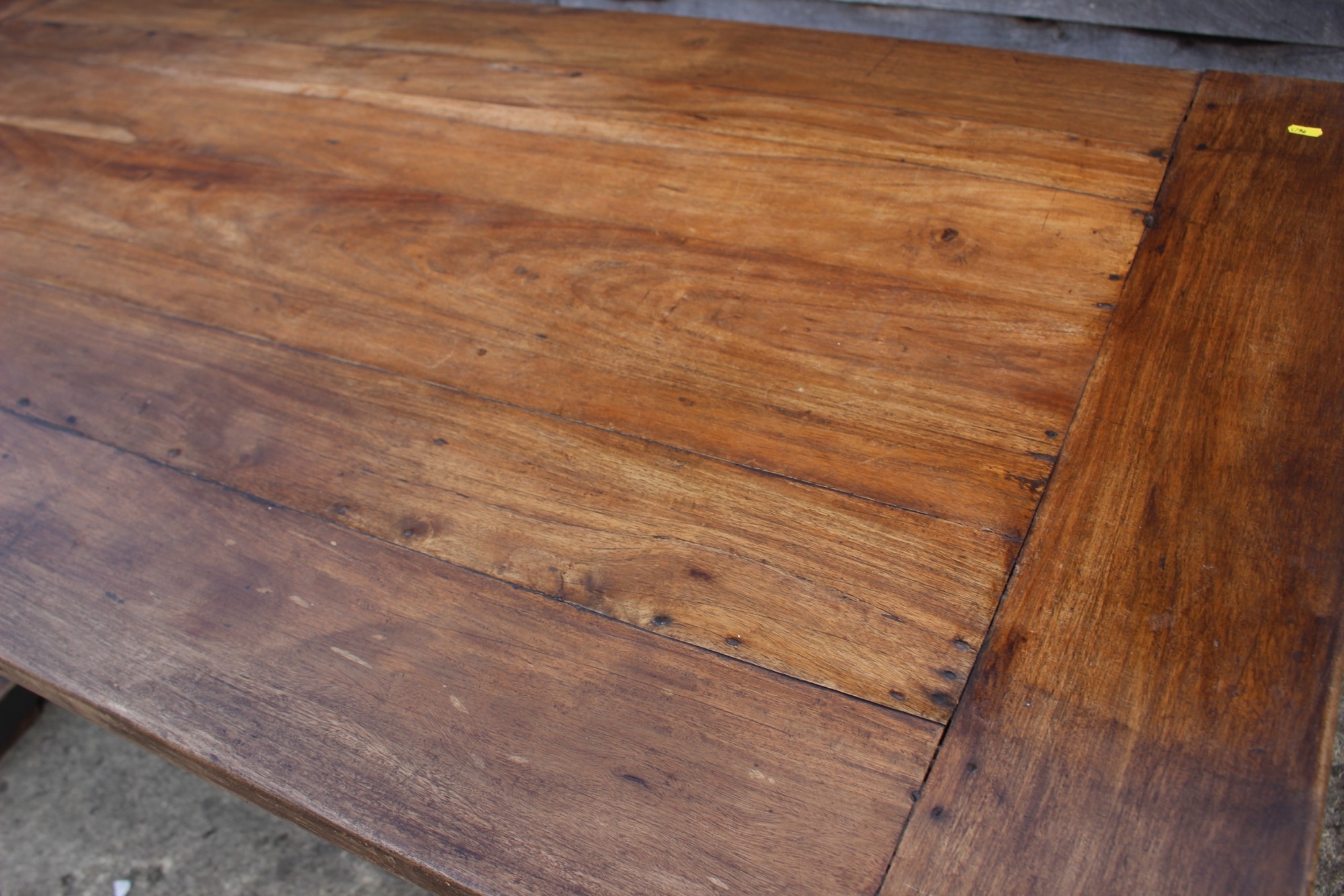 A fruitwood refectory dining table with cleated ends, 71" x 35"