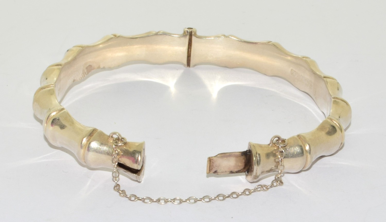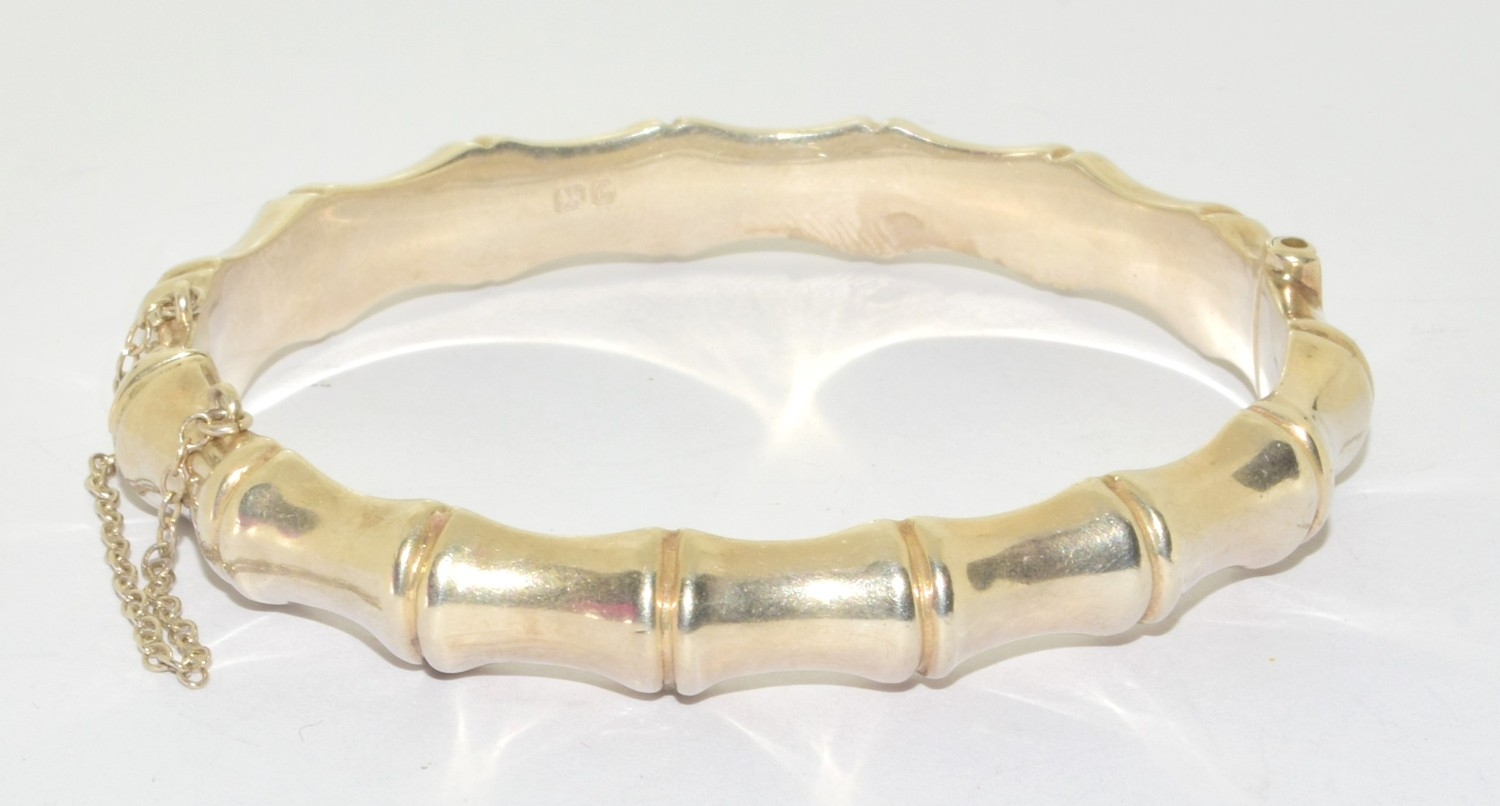 Unusual bamboo design 925 silver bracelet with safety chain 7cm diameter 13 grams