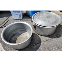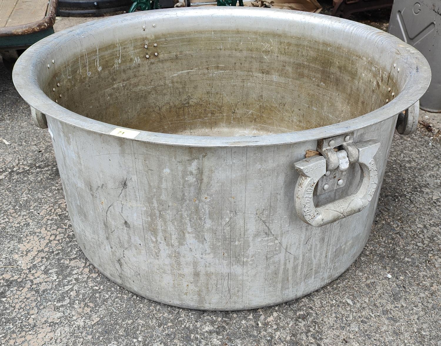 A very large vintage aluminium industrial cook pot, diameter 81cm