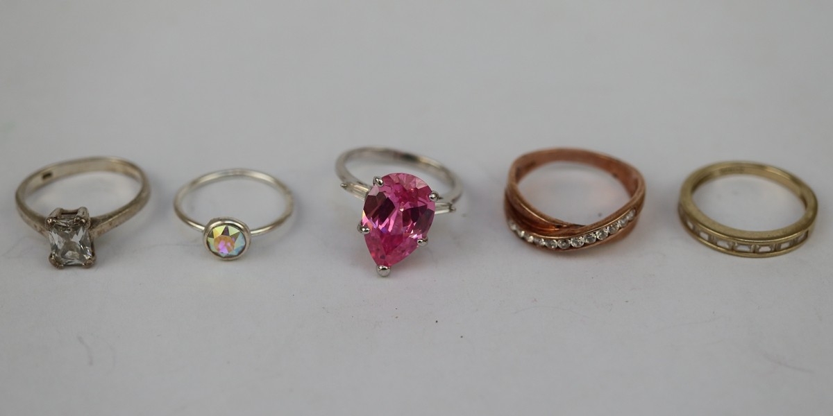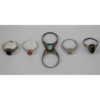 5 silver stone set rings