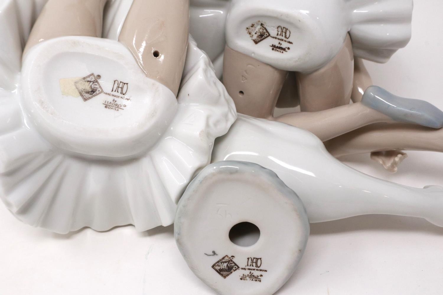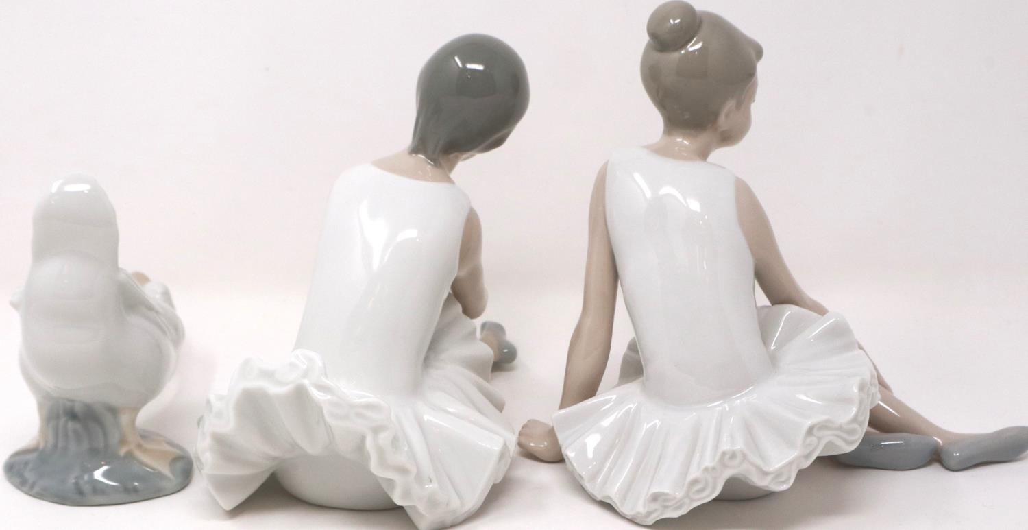 Three Nao figurines: two ballerinas and a swan, no cracks or chips, largest H: 18 cm. P&P Group 2 (£18+VAT for the first lot and £3+VAT for subsequent lots)