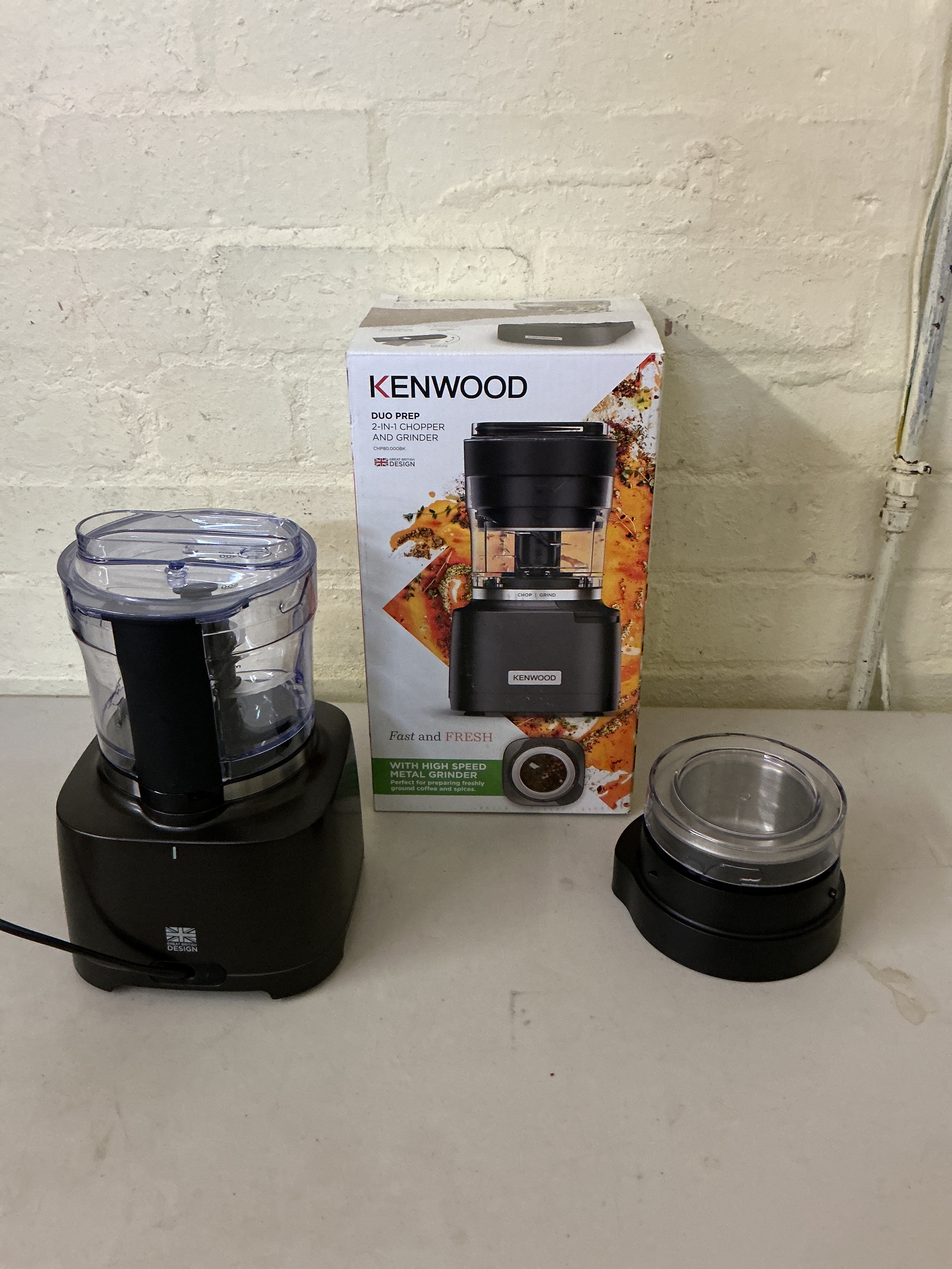 BOXED KENWOOD DUO PREP 2 IN 1 CHOPPER AND GRINDER WITH HIGH SPEED METAL GRINDER