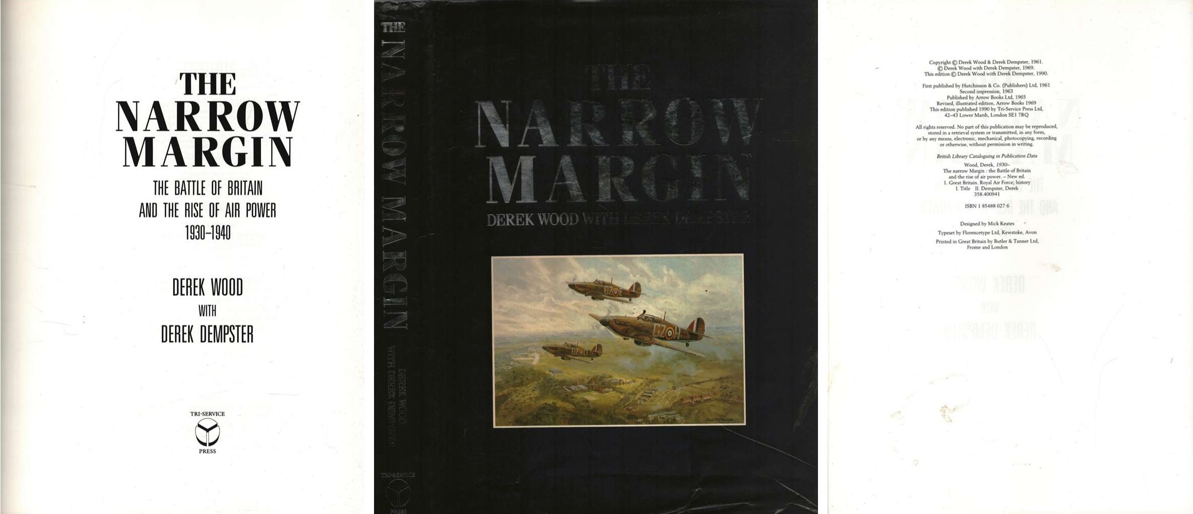 Derek Dempster signed The Narrow Margin The Battle of Britain and the Rise of Air Power 1930-1940 Hardback Book. Authors: Derek Wood with Derek Dempster Publisher: Tri-Service. Published: 1990. Inscribed. Dust Jacket slightly torn.