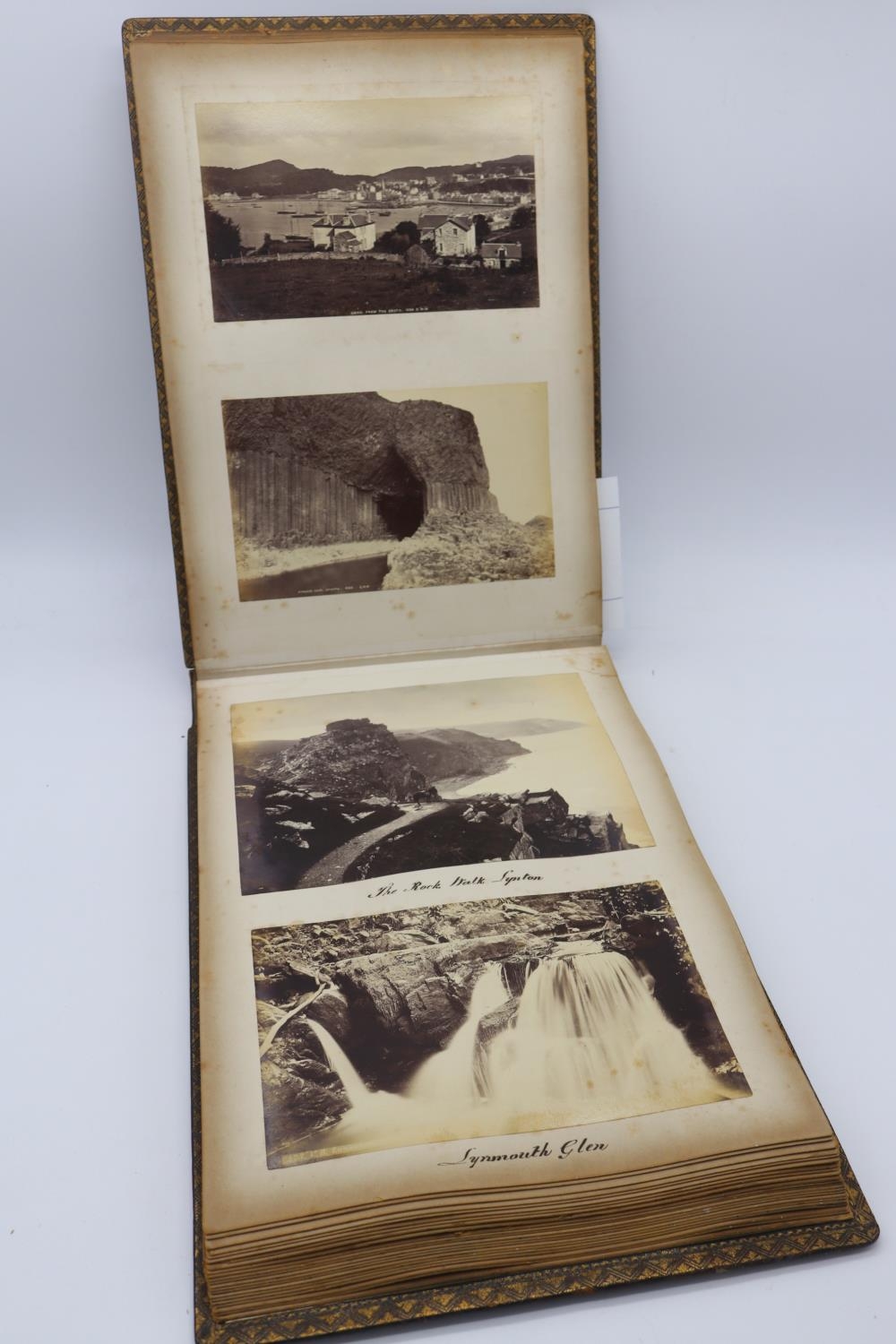A 19th Century black and white topographical photograph album including scenes of Conway Castle, Buttermere, Ffestiniong Railway, Penzance, St Michael's Mount, Gloucester Cathedral, Balmoral and others