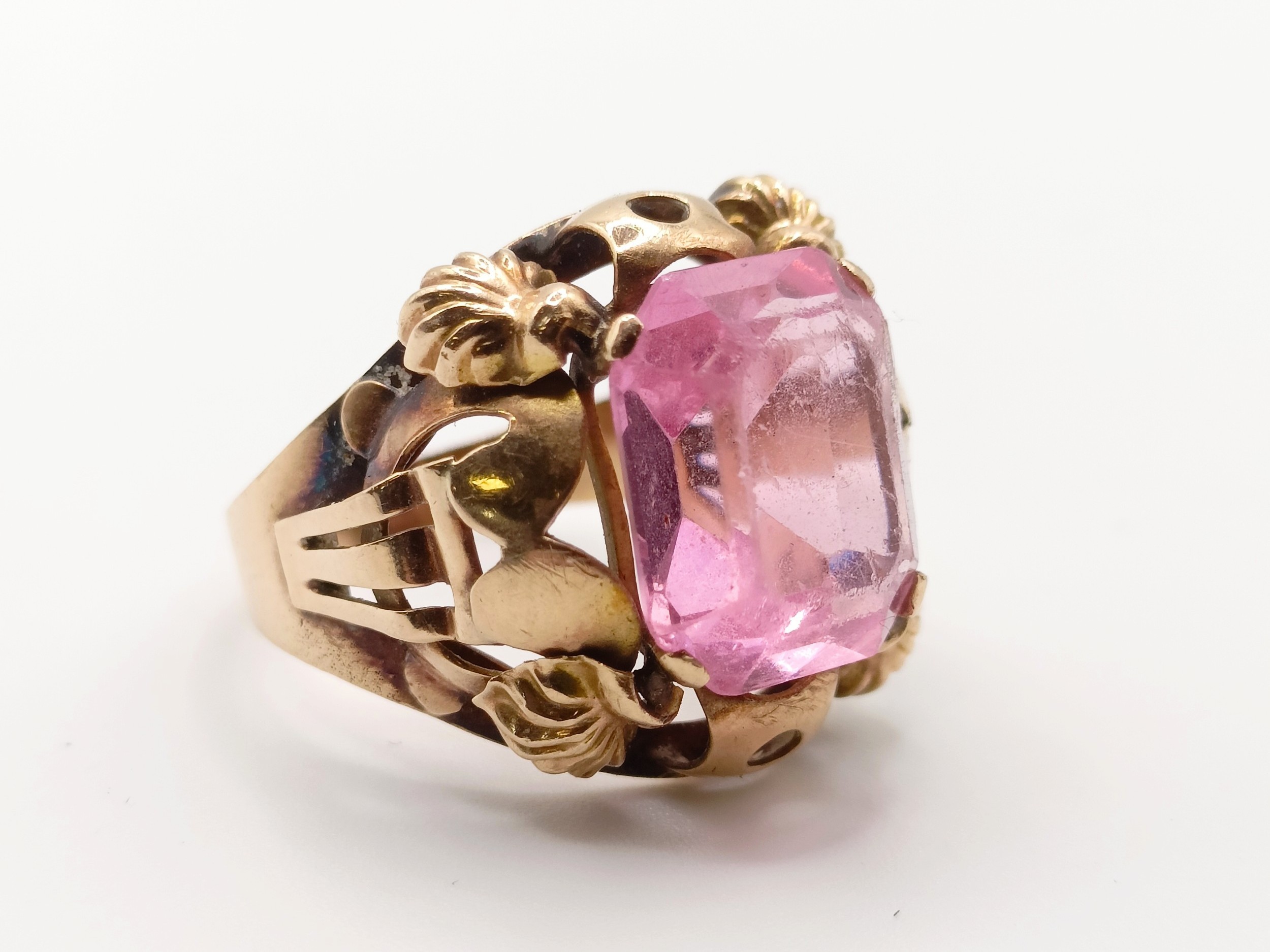 A 14ct gold and pink paste ring, ring size L