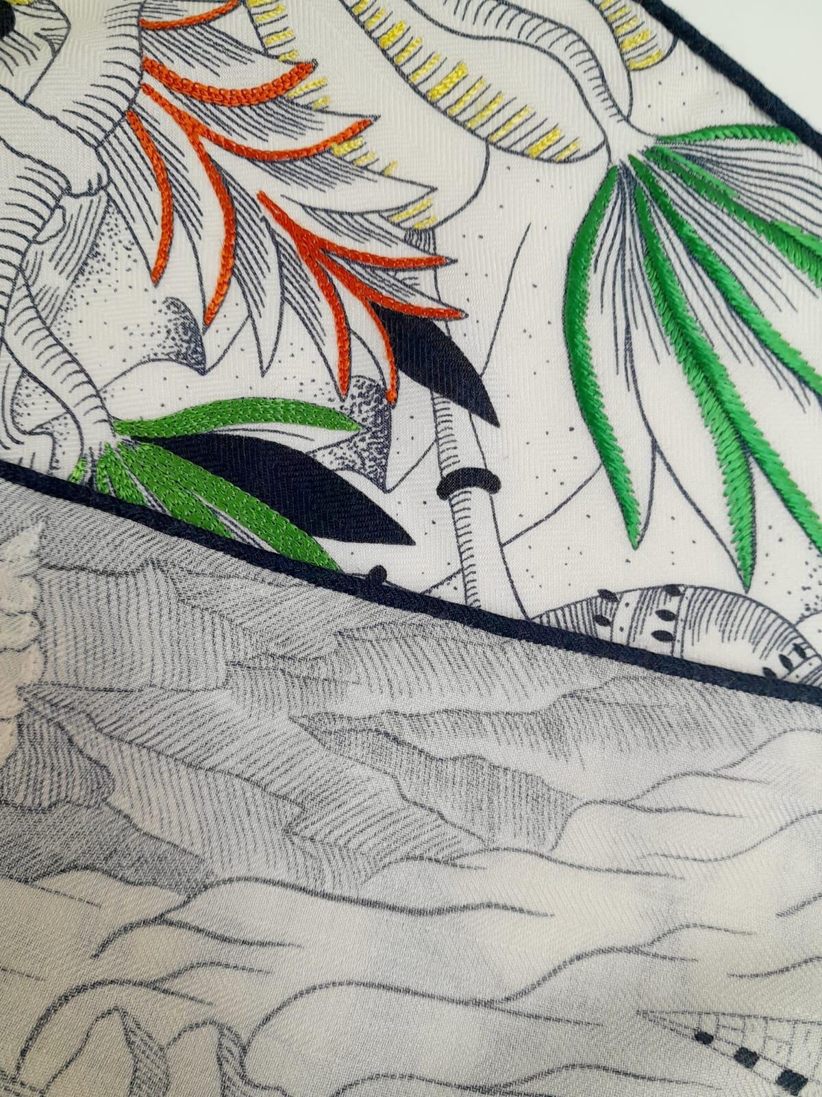 An Hermes Cosmographia Shawl/Scarf. Cashmere with embroidery and beaded details. New with tags. Comes with box. Approximately 140cm x 140cm. In good condition but please see photos or request a condition report. Ref: 6580