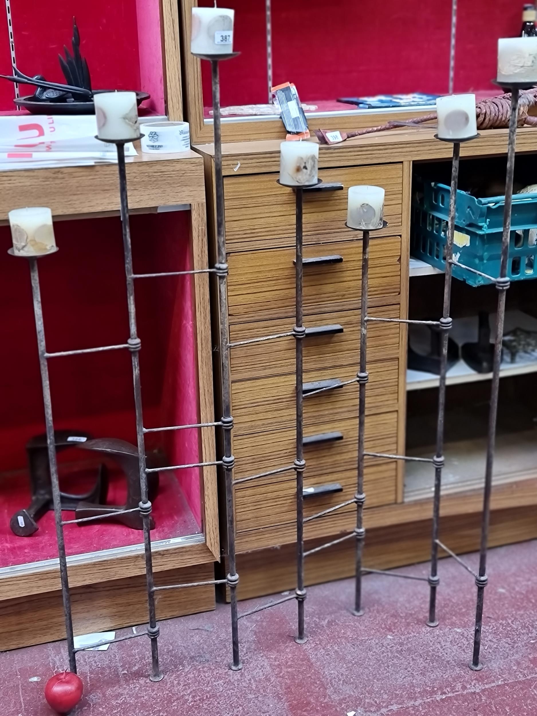 A striking foldable, floor standing candle holder with seven candle plates and accompanied with seven candles. H122cm X W102cm.