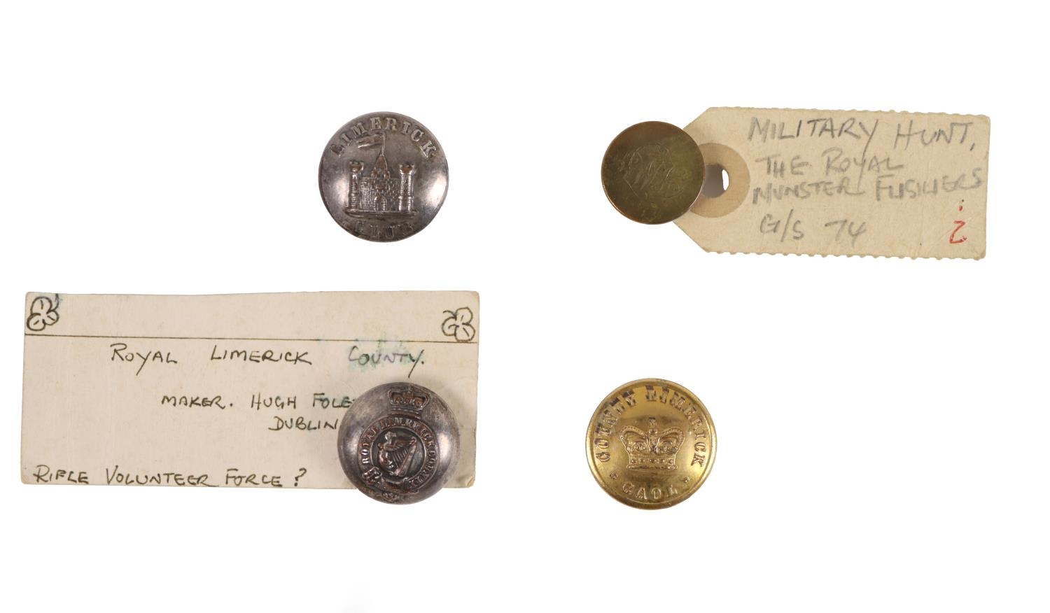 [Limerick Interest] Buttons: a group of 4 rare Military Buttons for:
