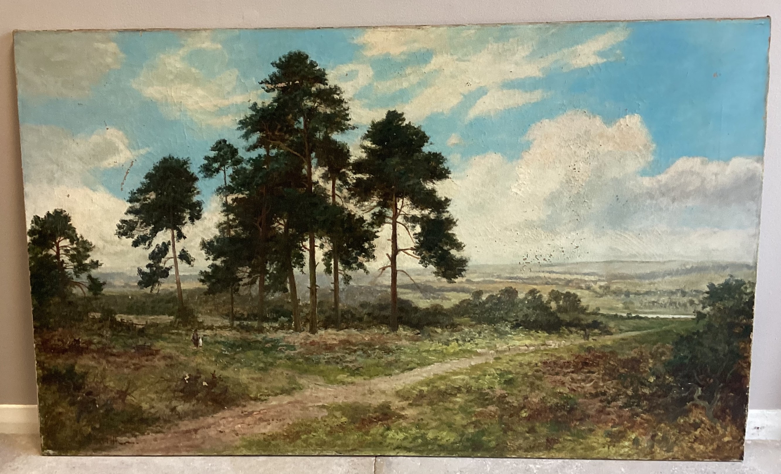 DANIEL SHERRIN: (British, 1868 - 1940): An unframed oil on canvas depicting an extensive landscape. Signed to bottom left. Approx. 127 cm x 77 cm. Est. £200 - £300.
