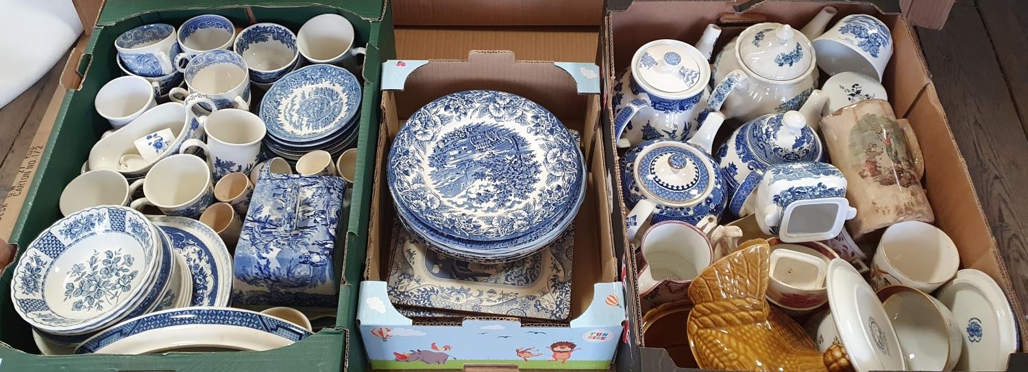 3 boxes of mainly 19th & early 20thC Blue & white transfer stoneware etc (large Qty)