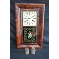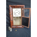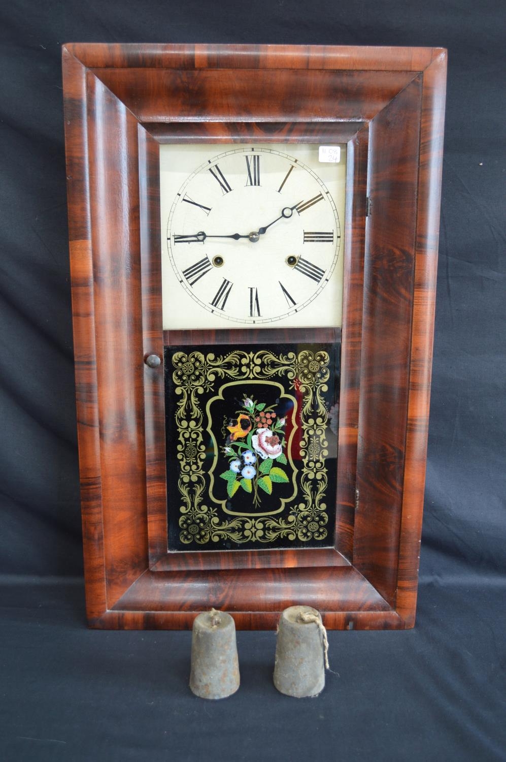Mahogany cased American wall clock having painted dial and black Roman Numerals - 39cm x 65cm tall