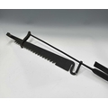 A cast iron butchers hook or steelyard balance scale, length 67cm, together with a wrought iron trammel hook or saw-tooth pot hanger, length 34cm and a thatchers ridge needle (3)