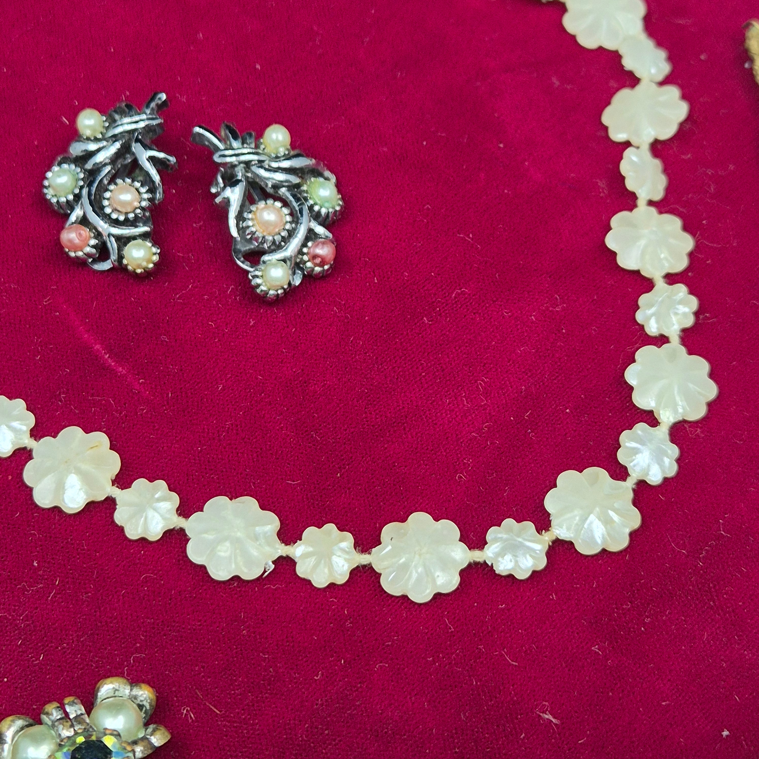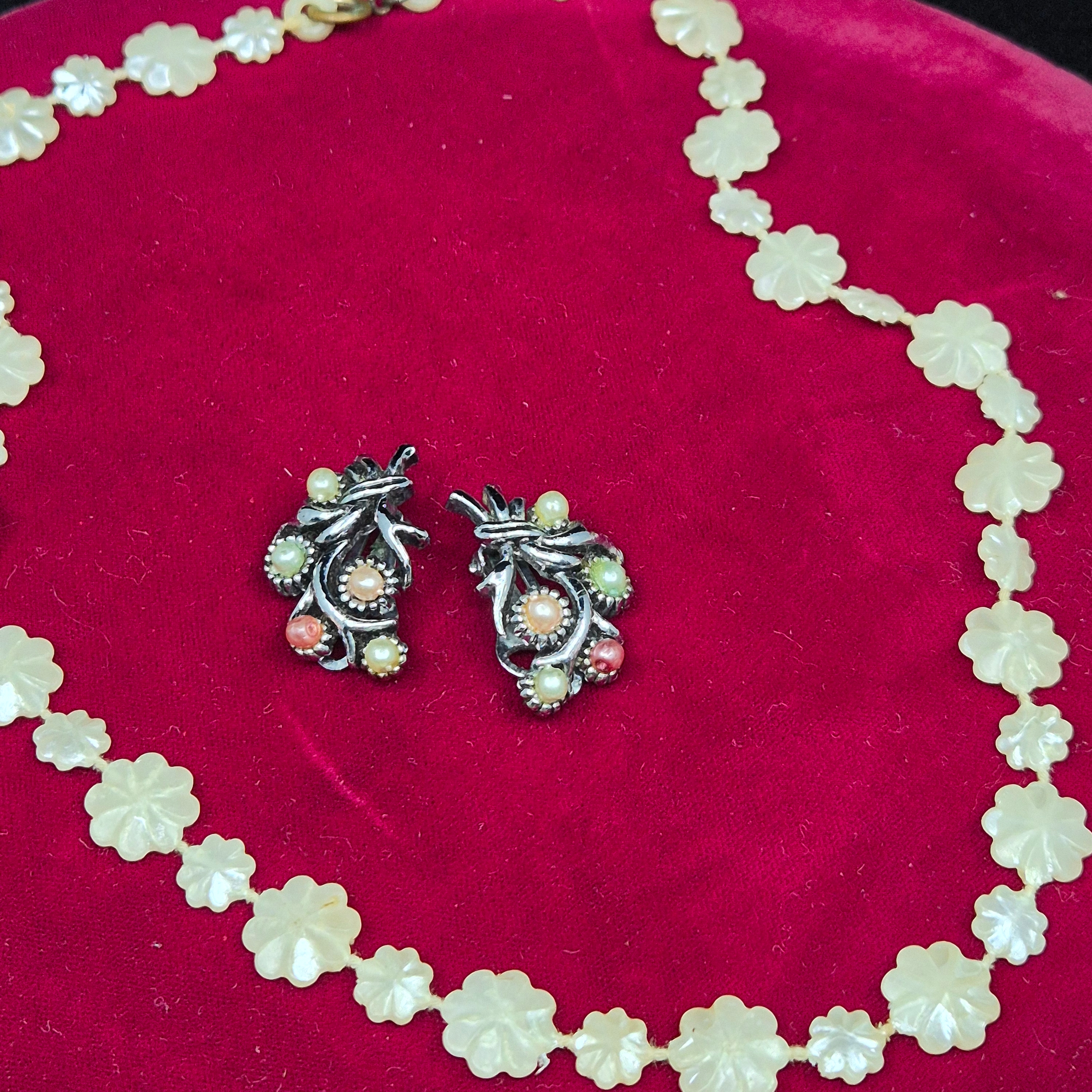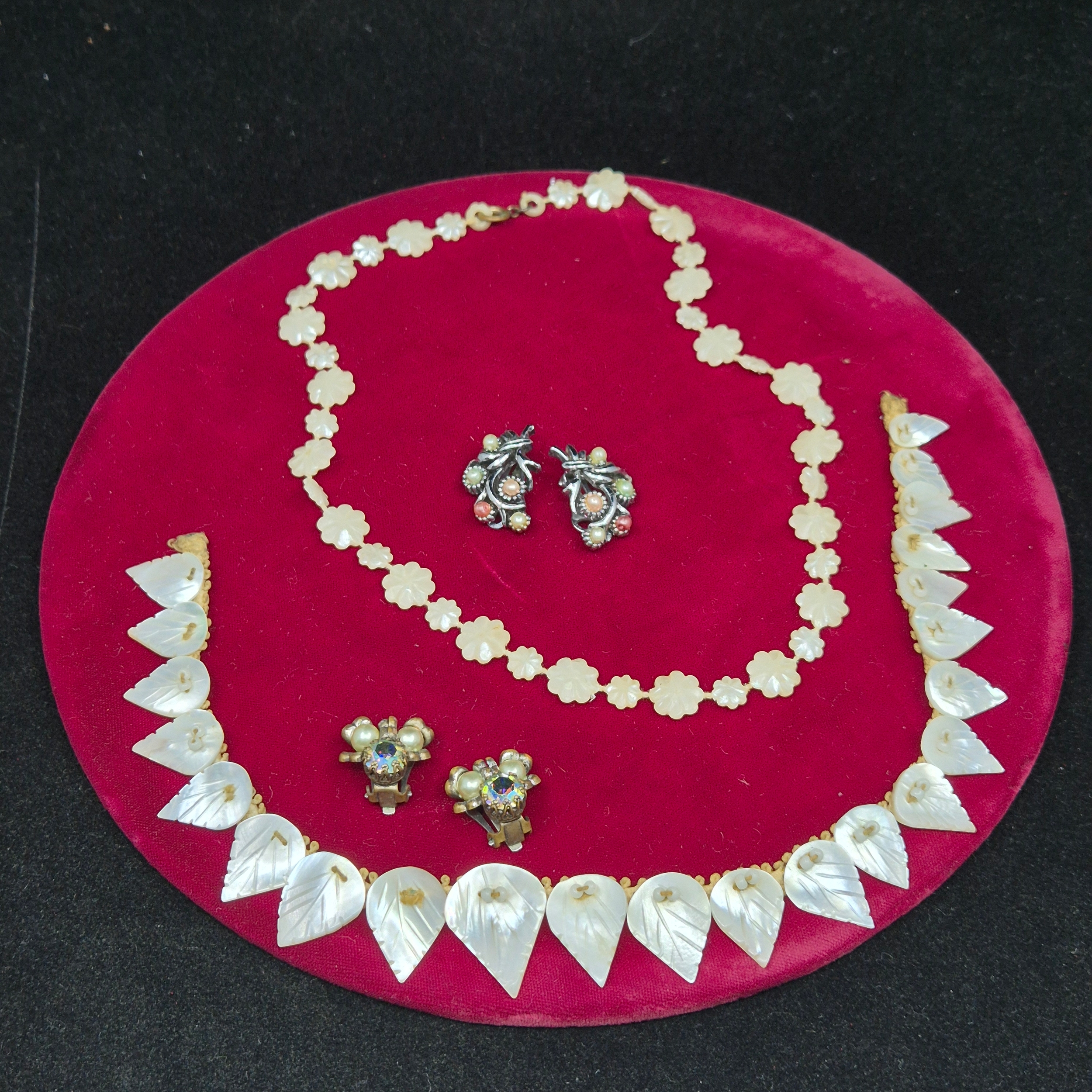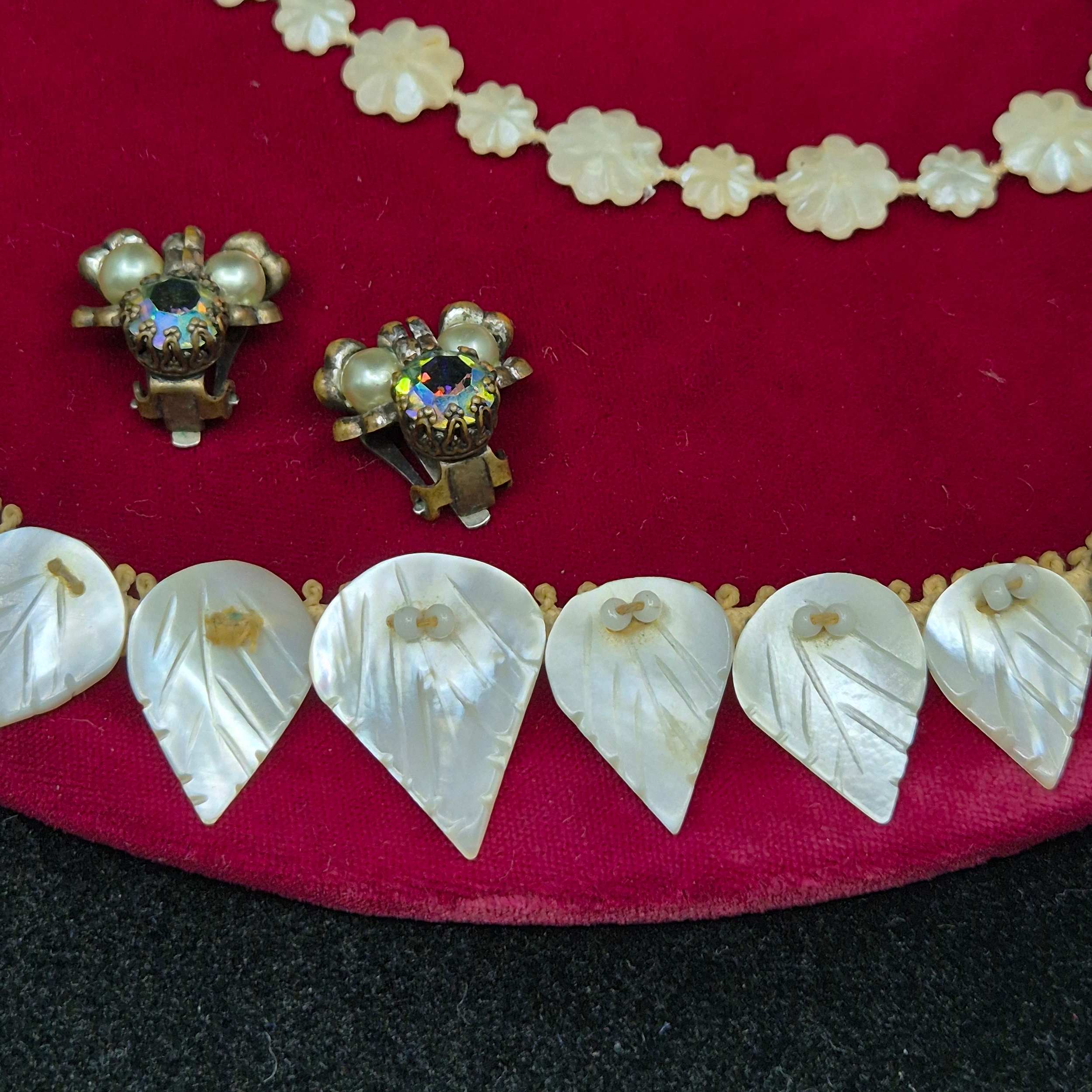 Two Mother of Pearl Necklaces together with Two Pairs of Vintage Clip on Earrings