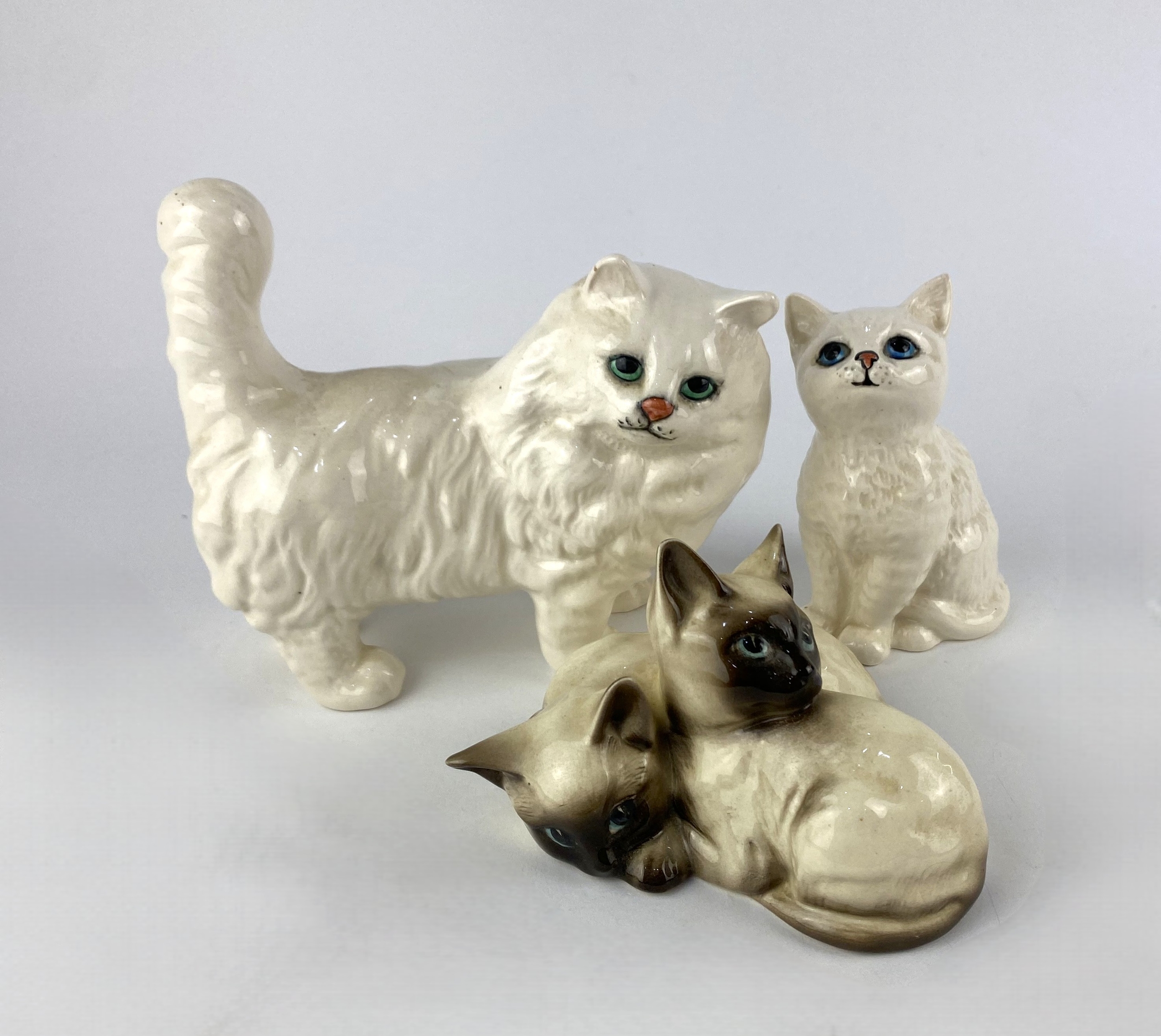 Three Beswick models of cats to include a white Persian cat, standing 12cm high