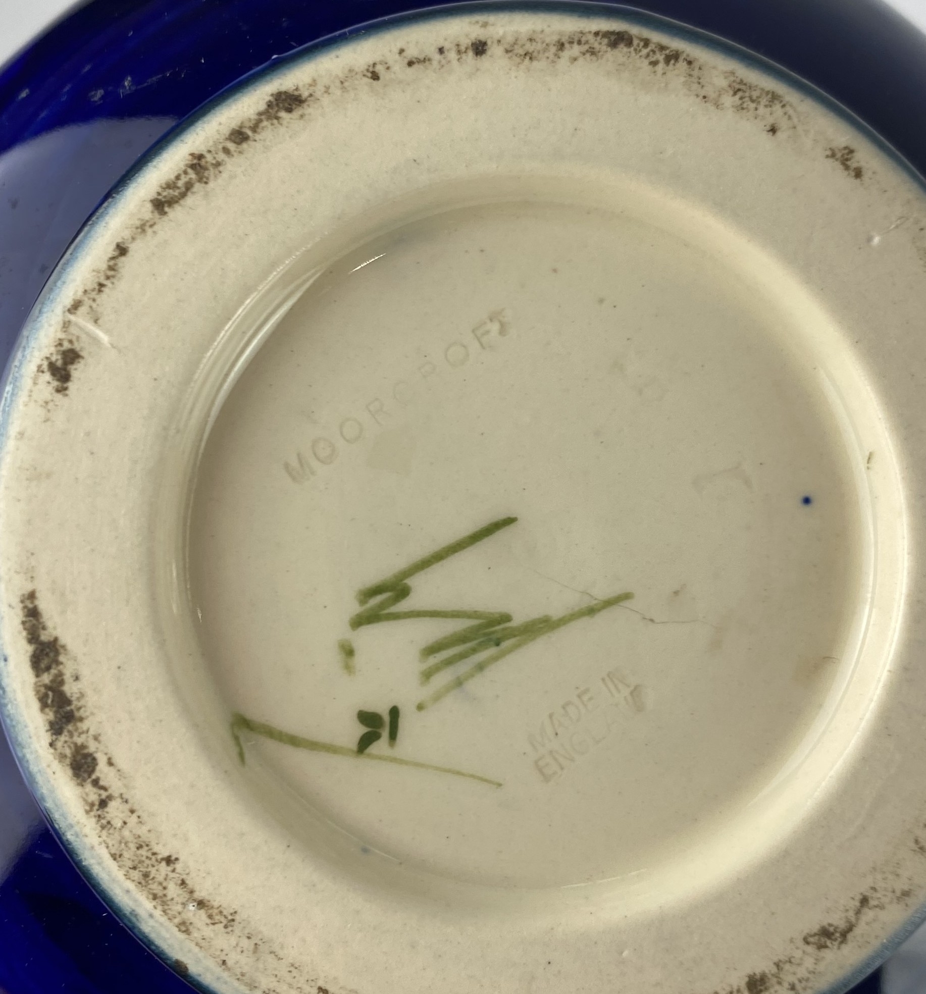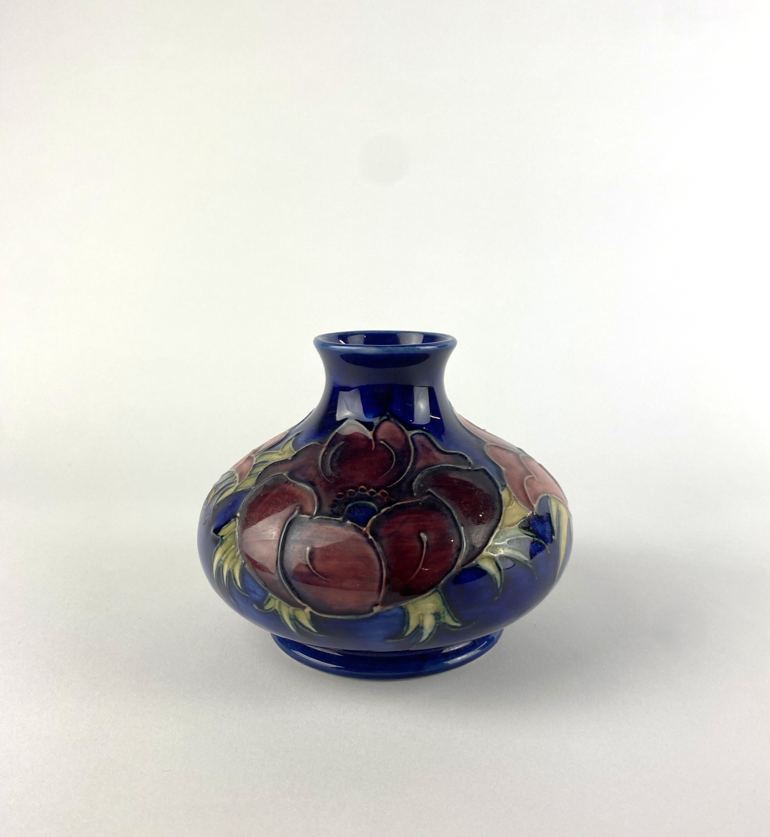 A Moorcroft anemone pattern baluster vase, blue ground, marks to base, 12cm high