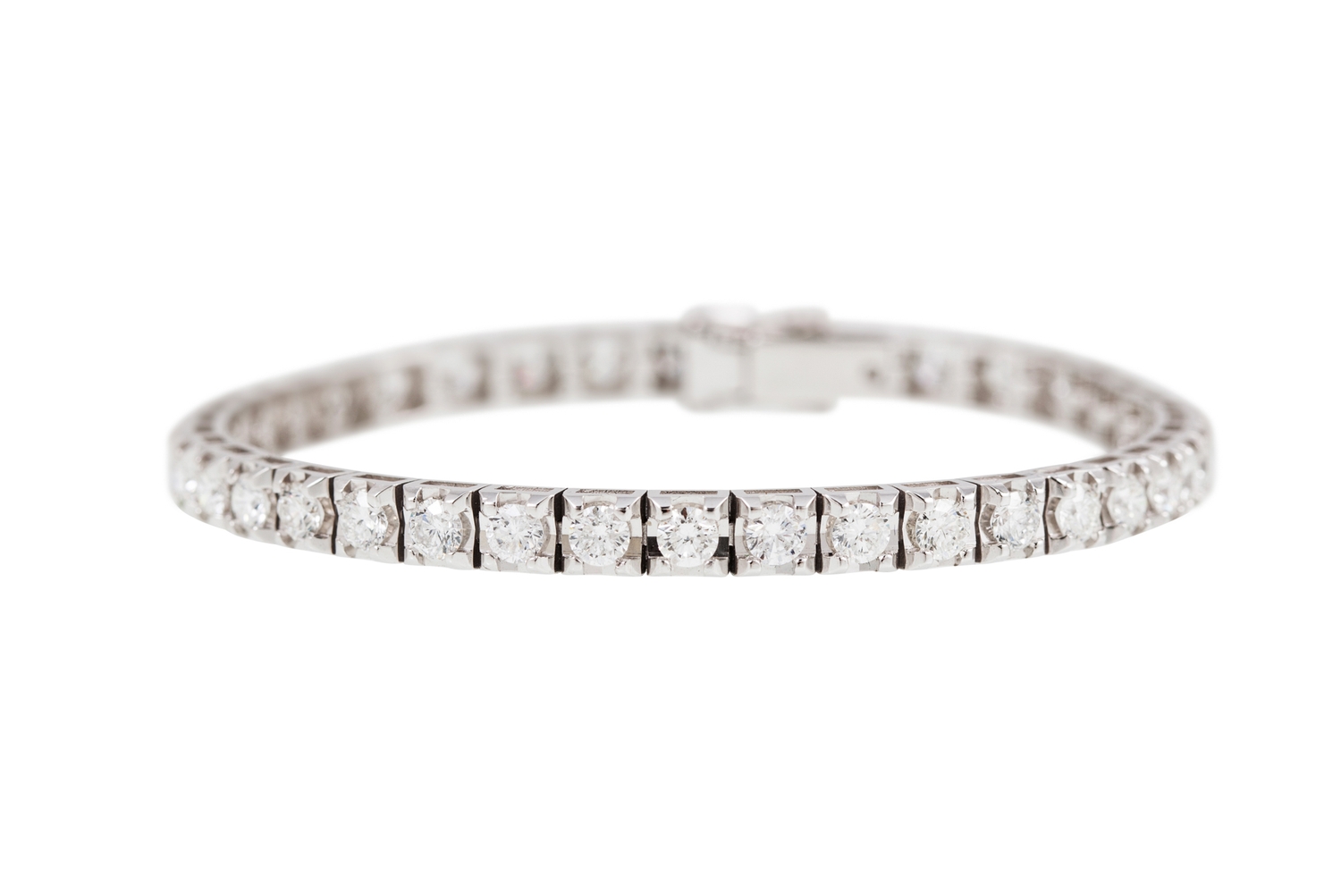 A DIAMOND LINE BRACELET, the brilliant cut diamonds mounted in 18ct white gold. Estimated; weight of diamonds; 5.60 ct, colour and clarity; G/H, SI