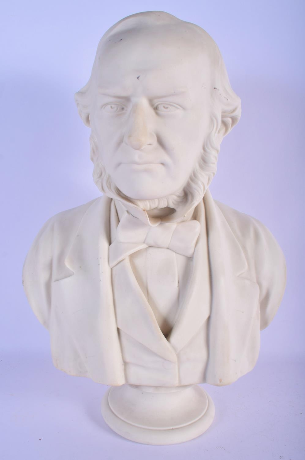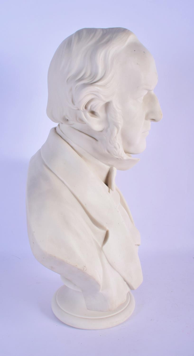 A LARGE 19TH CENTURY ENGLISH PARIAN WARE BISQUE GLAZED BUST modelled as a male. 42 cm x 24 cm.