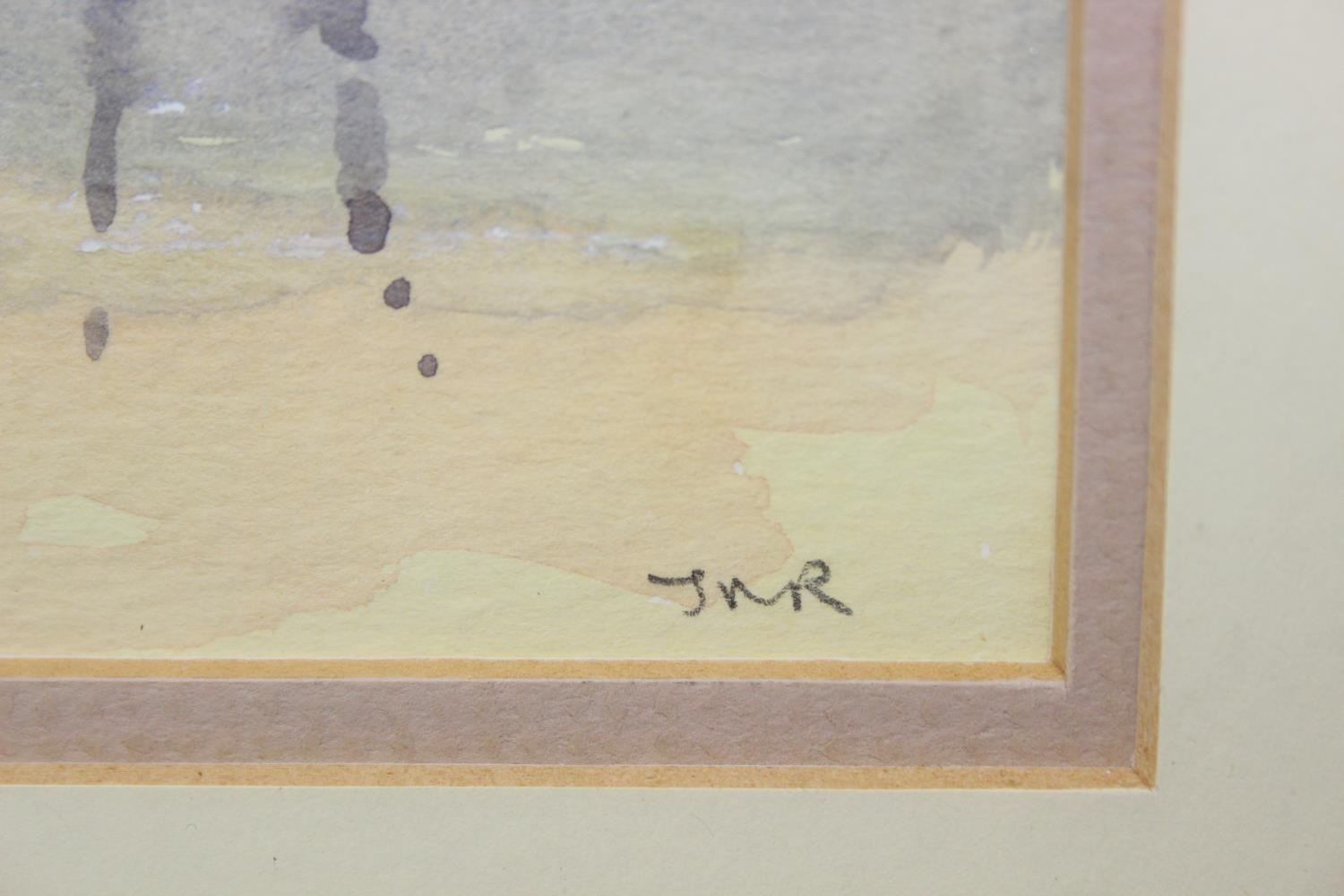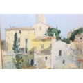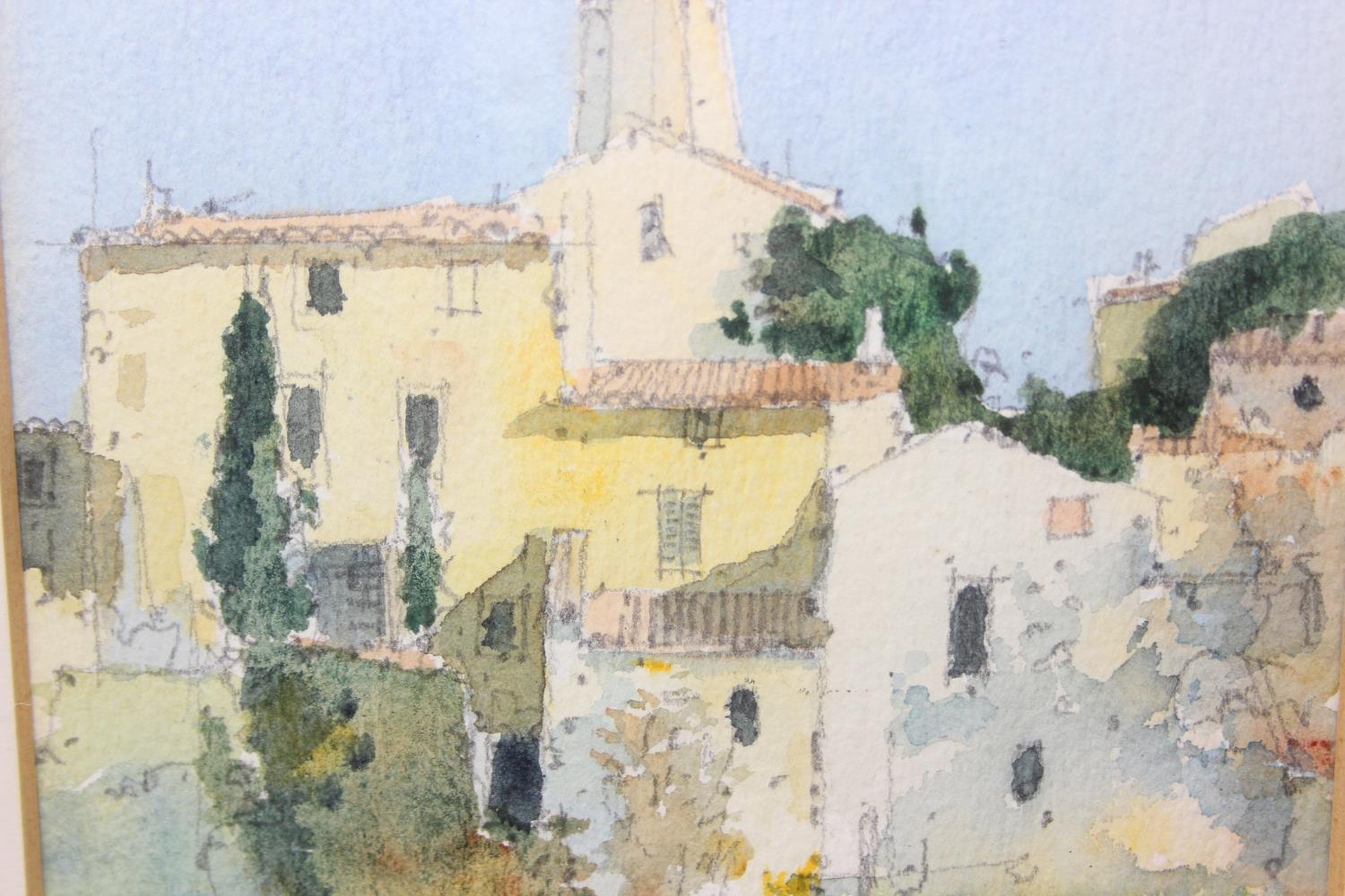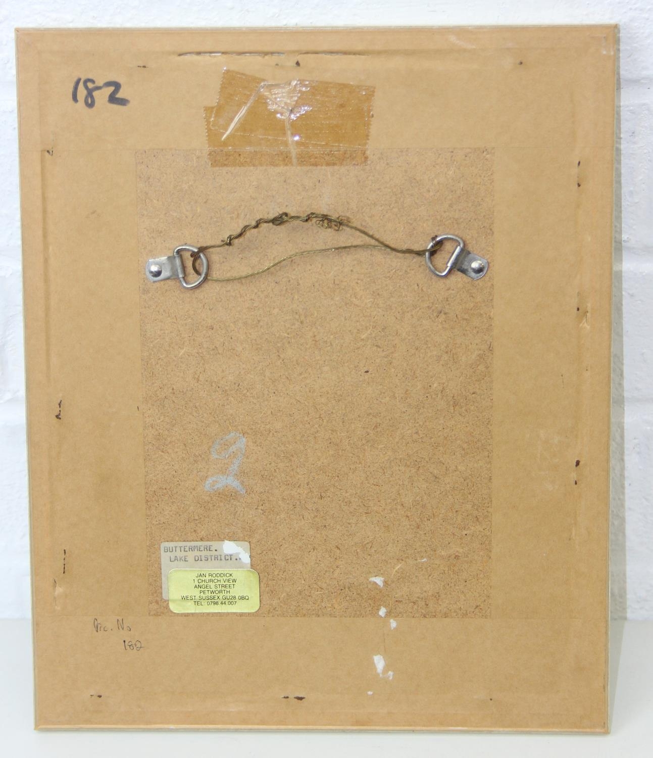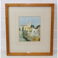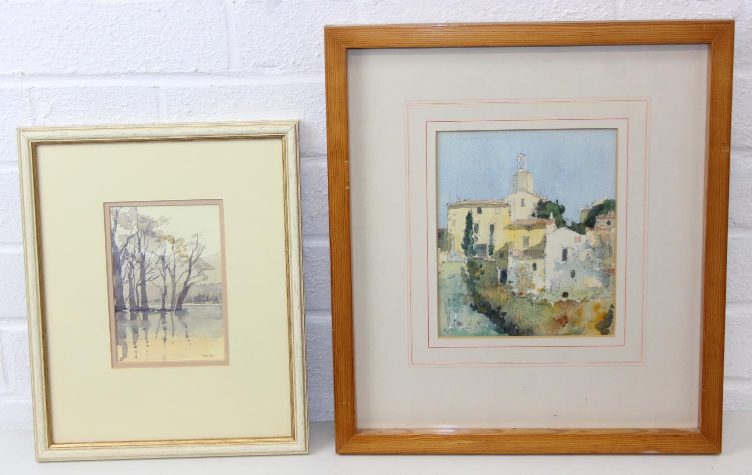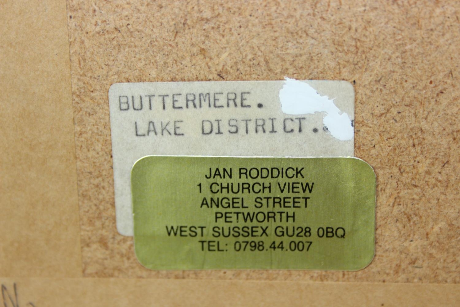 Two vintage watercolours, one by Jan Roddick of Buttermere in the Lake District, the other indistinctly signed but of a Mediterranean town, both framed, the largest 38cm x 34cm [2]