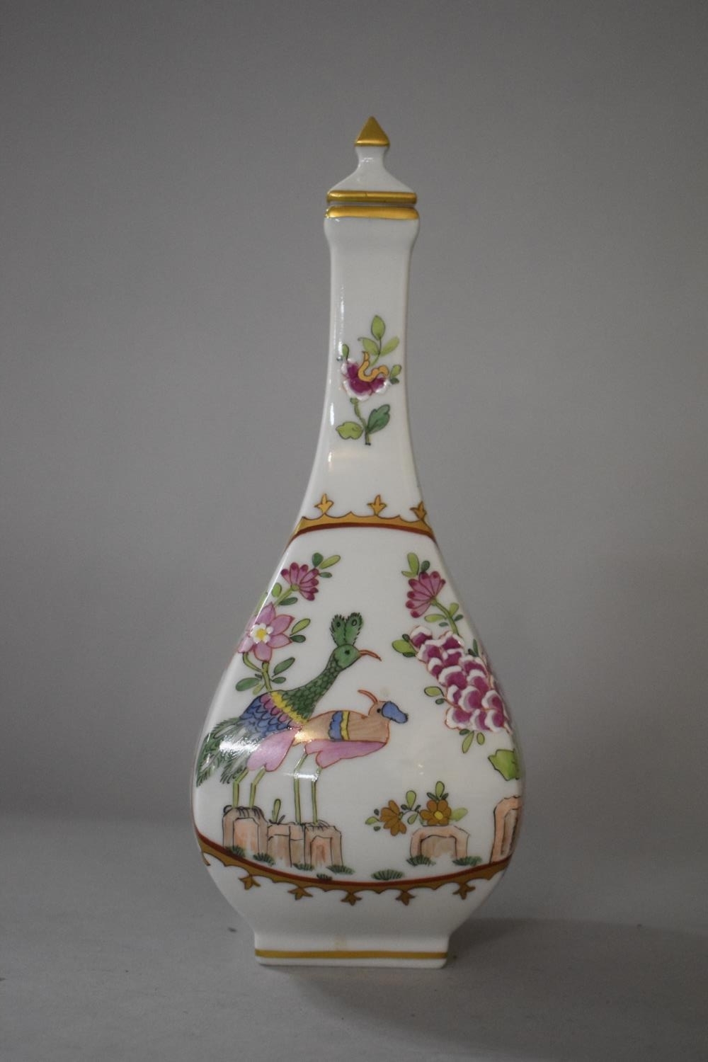 A Late 20th Century Dresden Lidded Bottle Vase with Hand Painted Exotic Bird Decoration, 21.5cms High