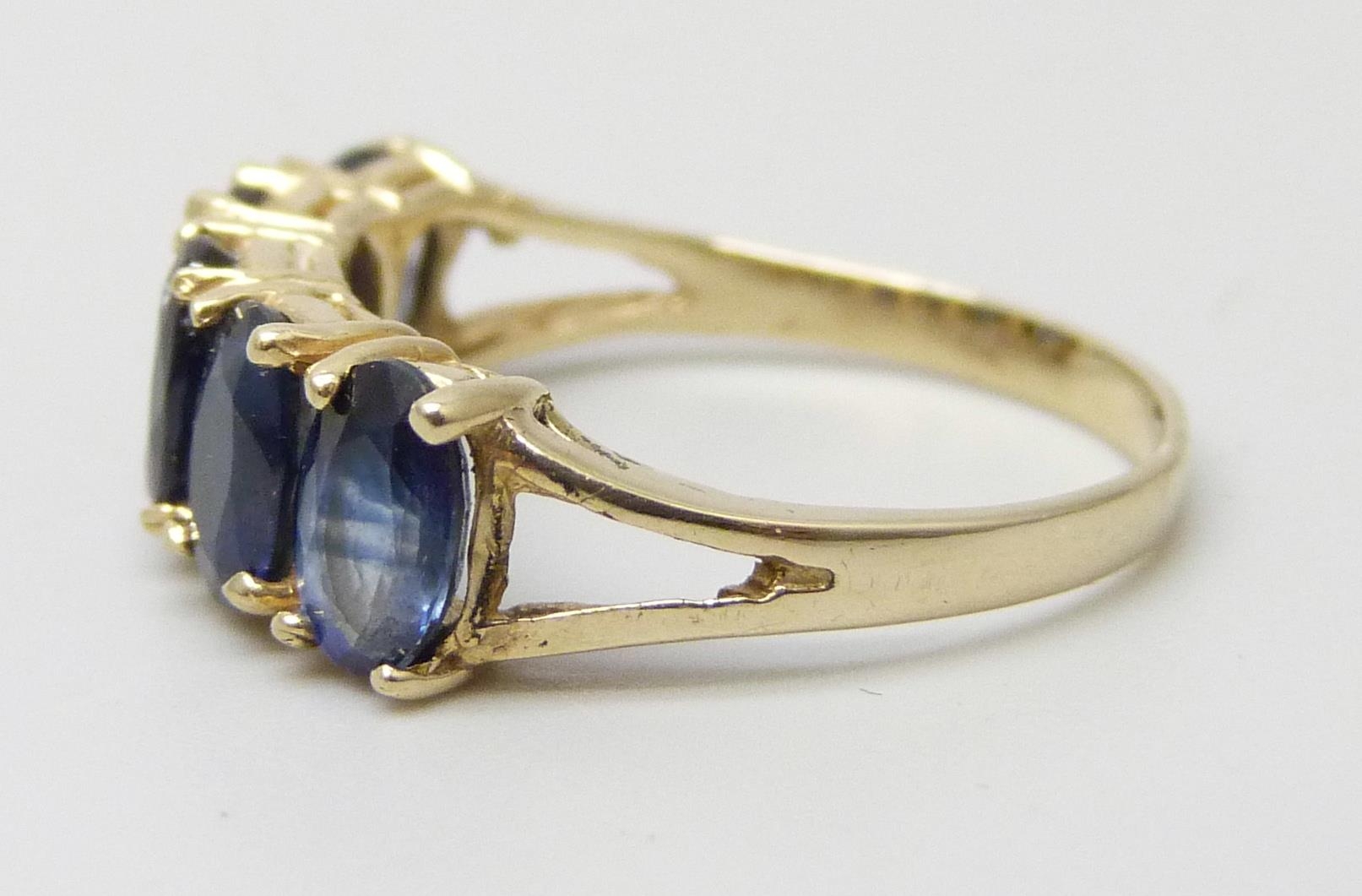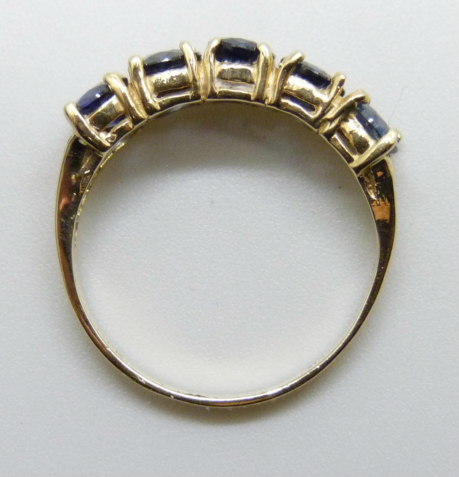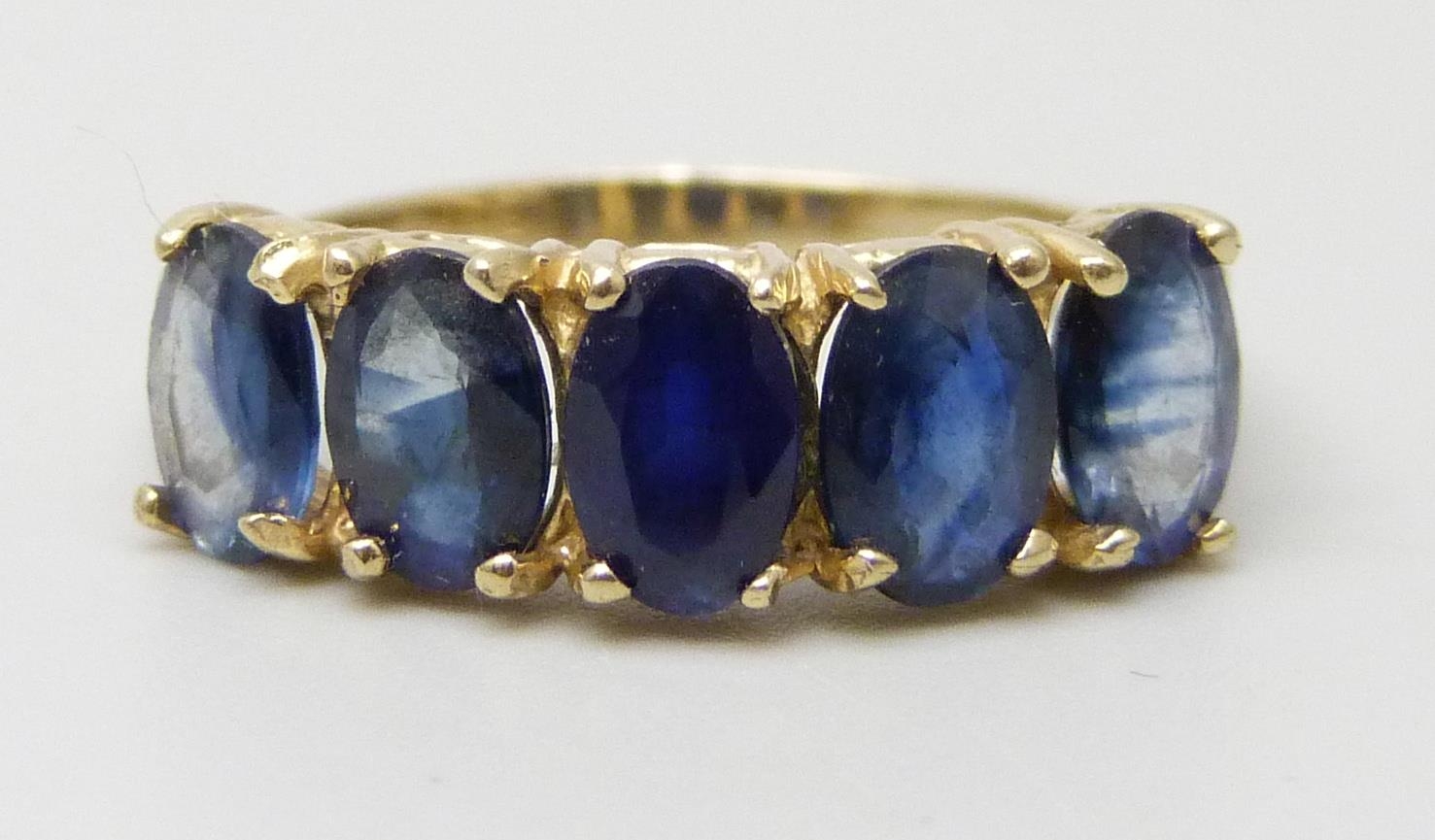 A 14k gold five stone sapphire ring, 2.2g, L
