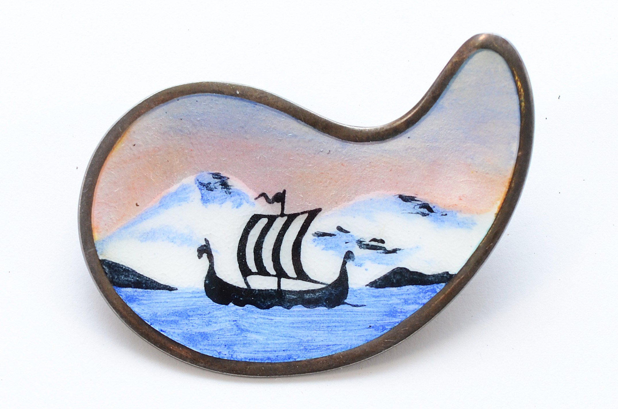 Knut Rasmussen, a Norwegian silver and enamel brooch depicting a Viking longboat, 45mm, 12g