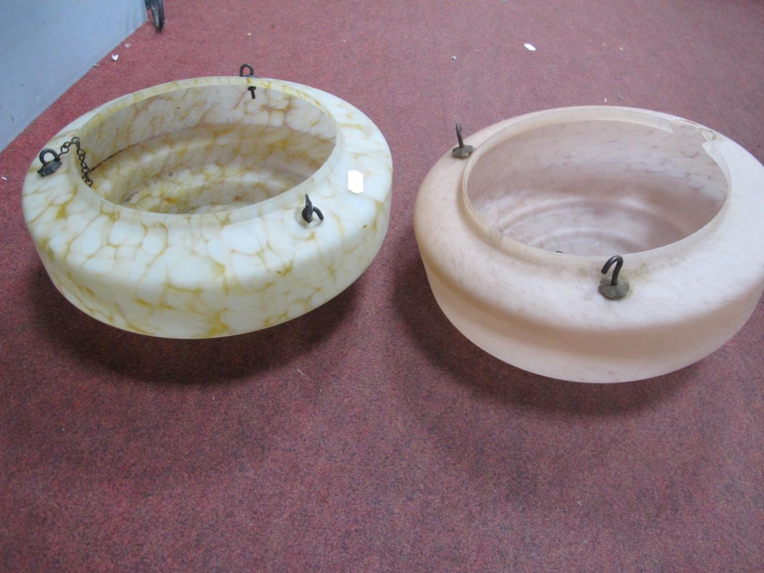 Two Mottled Glass Ceiling Lights, circa 1930's (one damaged).
