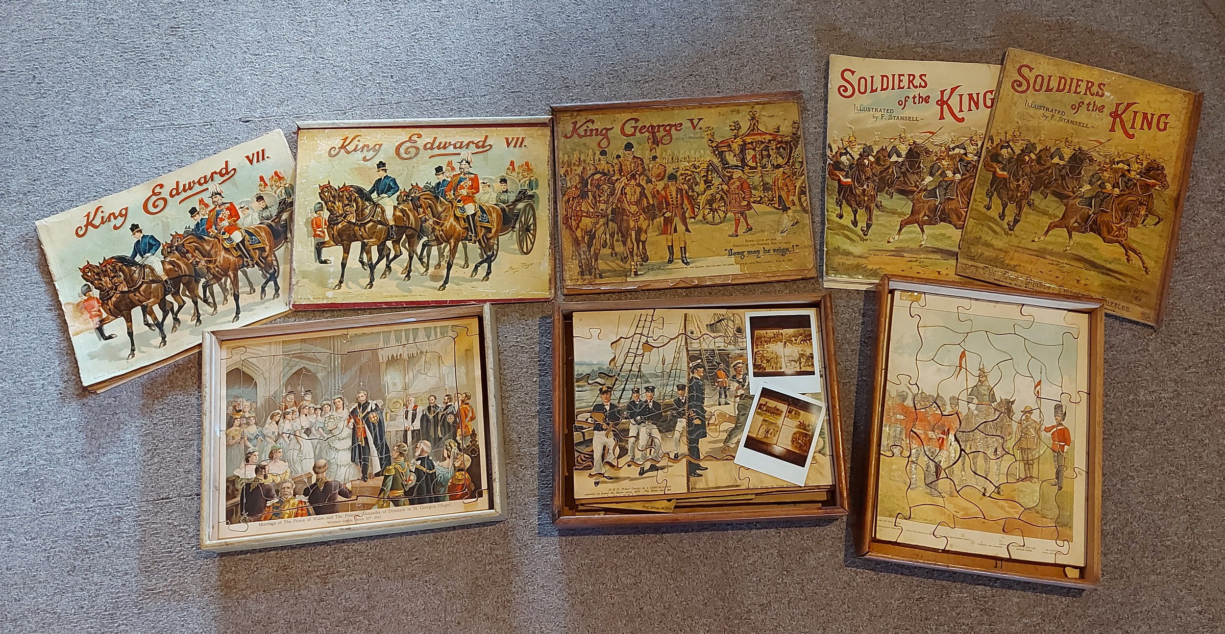 Raphael Tuck and Sons King Edward VII Jigsaw puzzles together with two similar boxed puzzles, Soldiers of The King and King George V