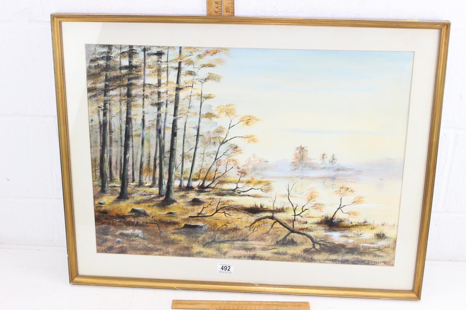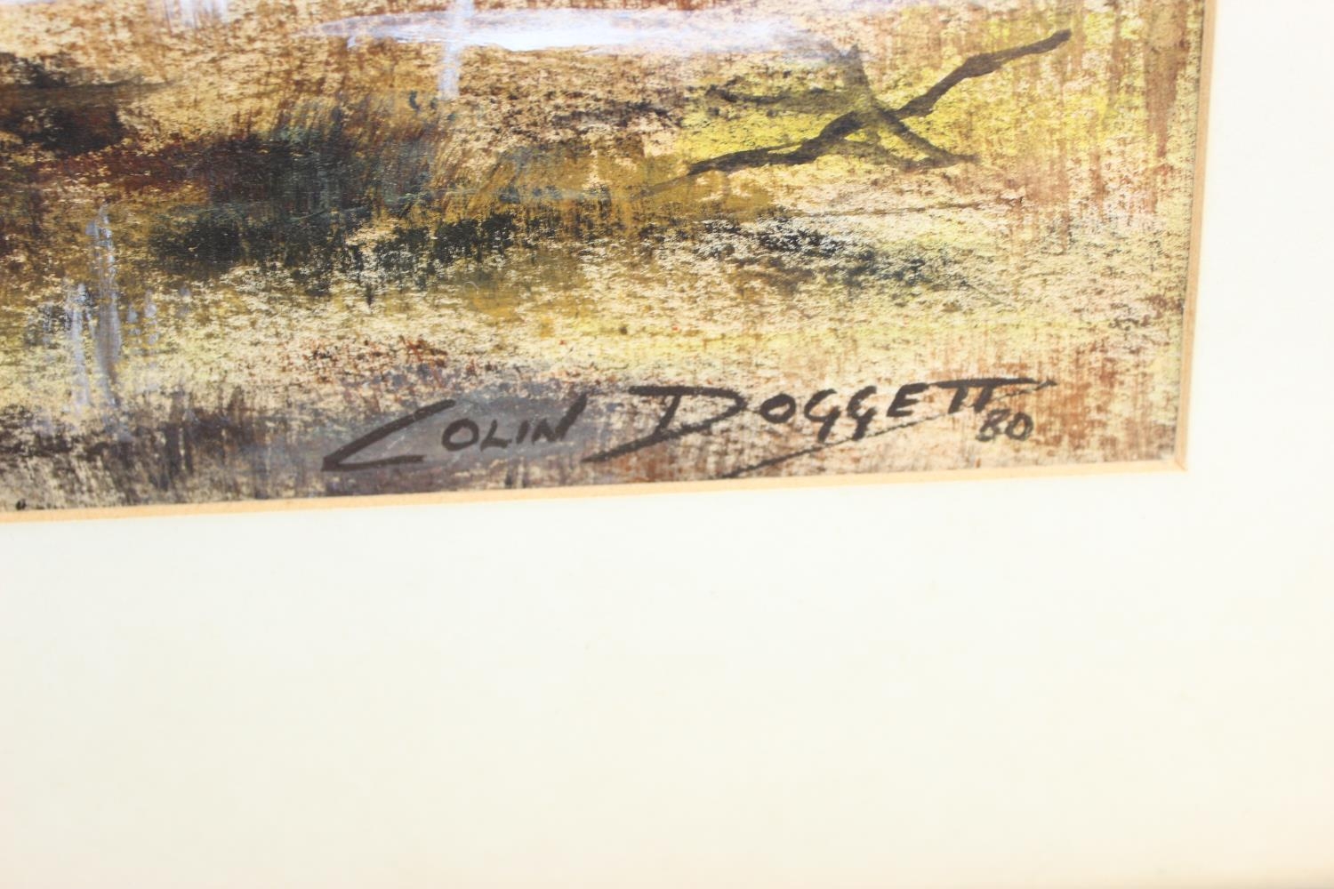 Colin Doggett (XX), oil painting of a riverbank in autumn, dated 1980