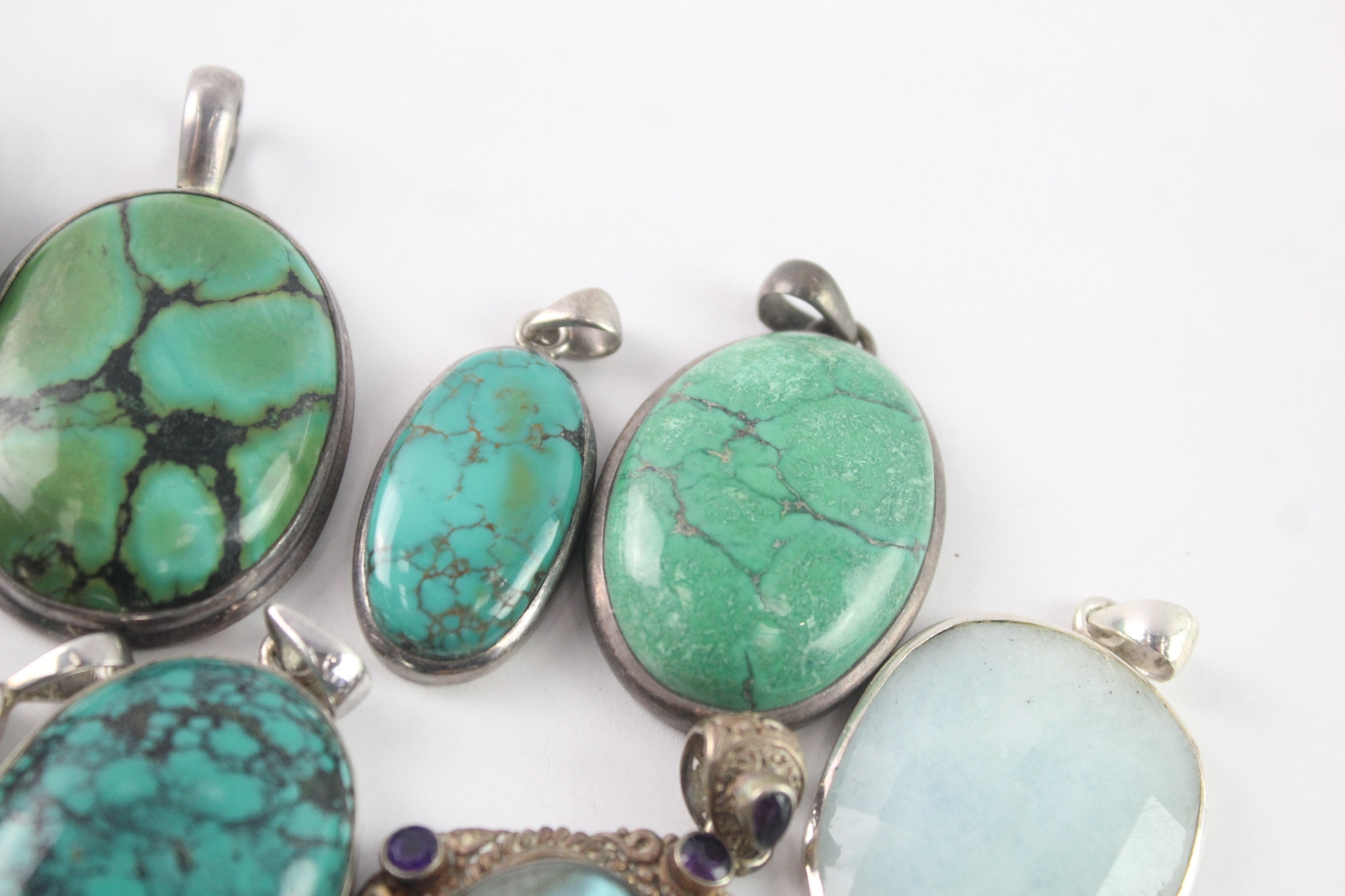 Collection of Sterling Silver Gemstone Pendants inc. Turquoise, Labradorite x 8 (132g)